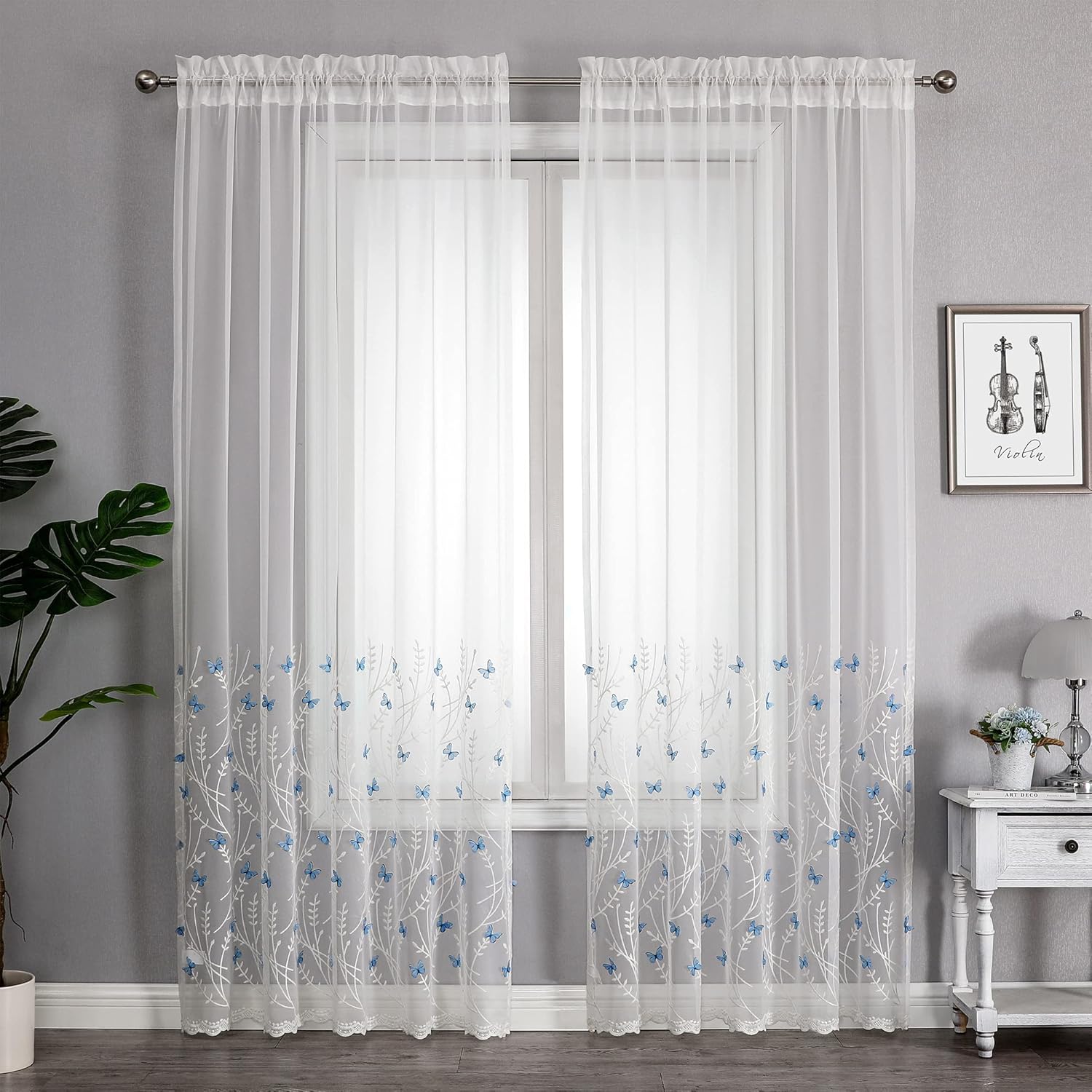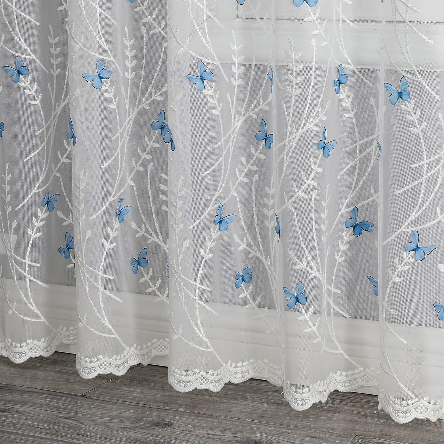 VISIONTEX White Sheer Voile Curtains, Decorative White Embossed Butterflies Rod Pocket Window Drapes for Home Kitchen, Living Room and Bedroom 54 x 95 Inch, Set of 2 Curtain Panels