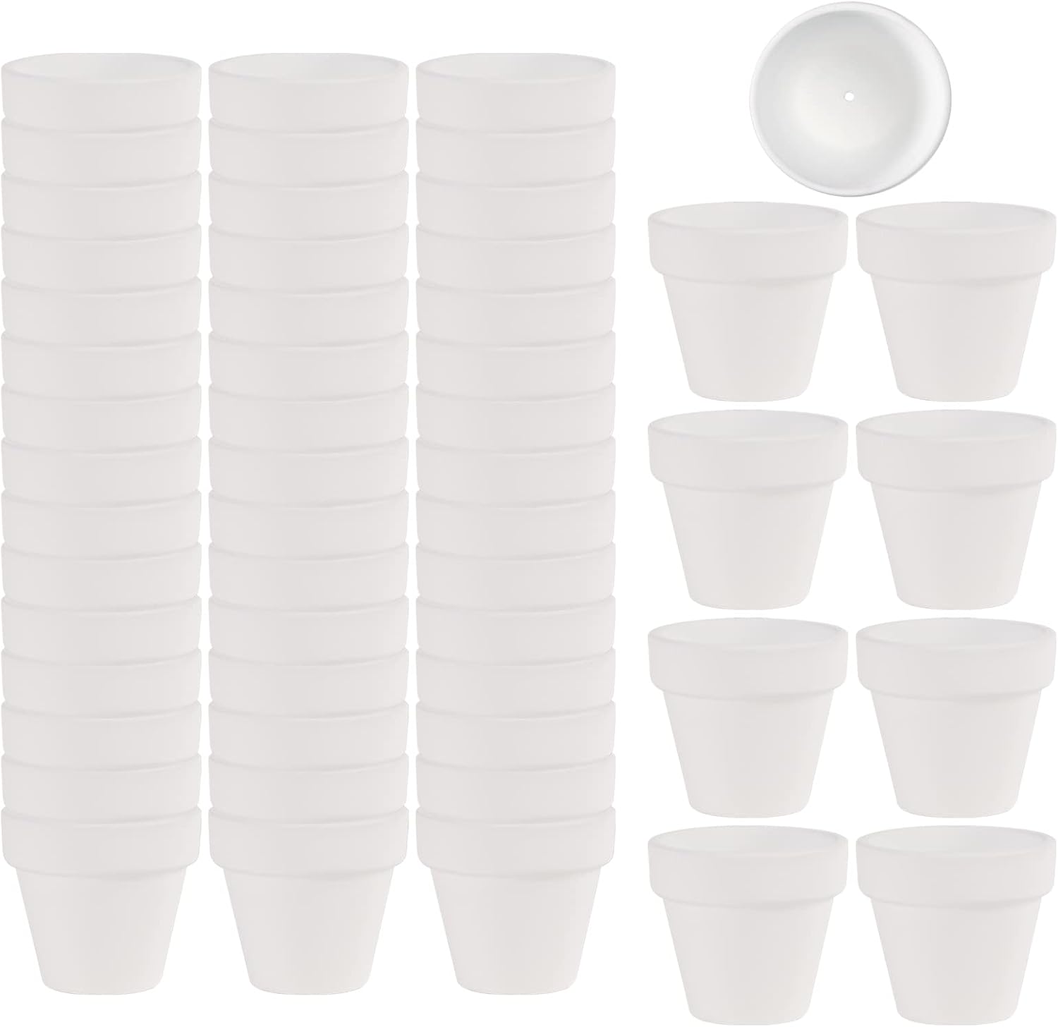 - Mini and Lovely: The tiny white clay pots for plants, 2" in height, 2.1" in outer diameter, are designed for holding small succulent, cactus and herbs. There are 54 pcs white pots in the package, plants and soil are not included.