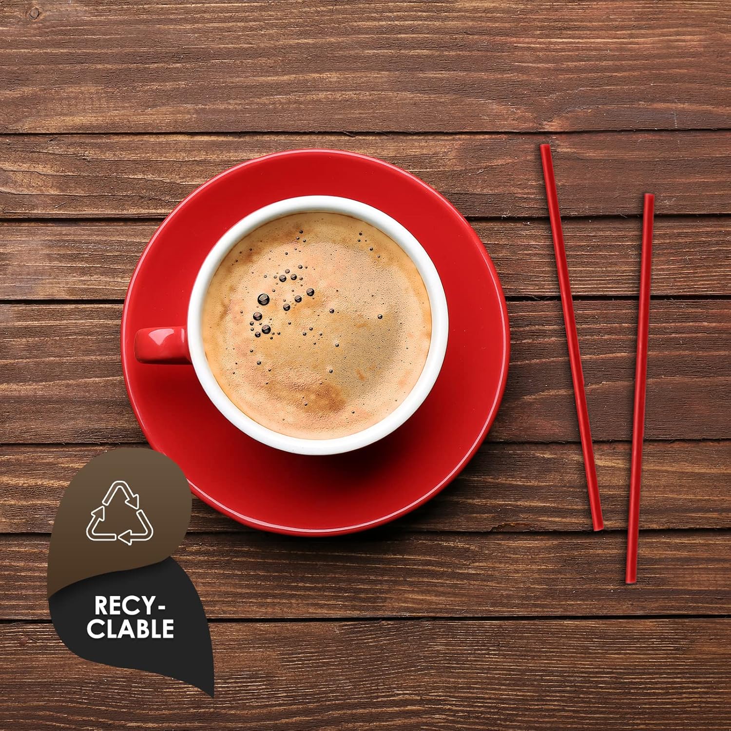 - NO-MESS: Say farewell to messy spills with our red straws, designed to fit any type of glass or tumbler. Perfect for mixing in your coffee creamer, milk, sugar, honey, or syrup, these stir sticks for coffee bar ensure no more sticky fingers or stained tablecloths.