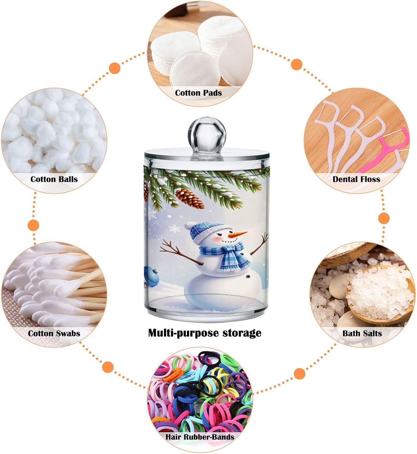 Gredecor Christmas Winter Qtip Holder Dispenser 2 Pack Snowman Snowflake Pine Cones Gifts Bathroom Decorative Storage Canister Holder Counter Vanity Organizer for Cotton Ball Swabs Pads Floss
