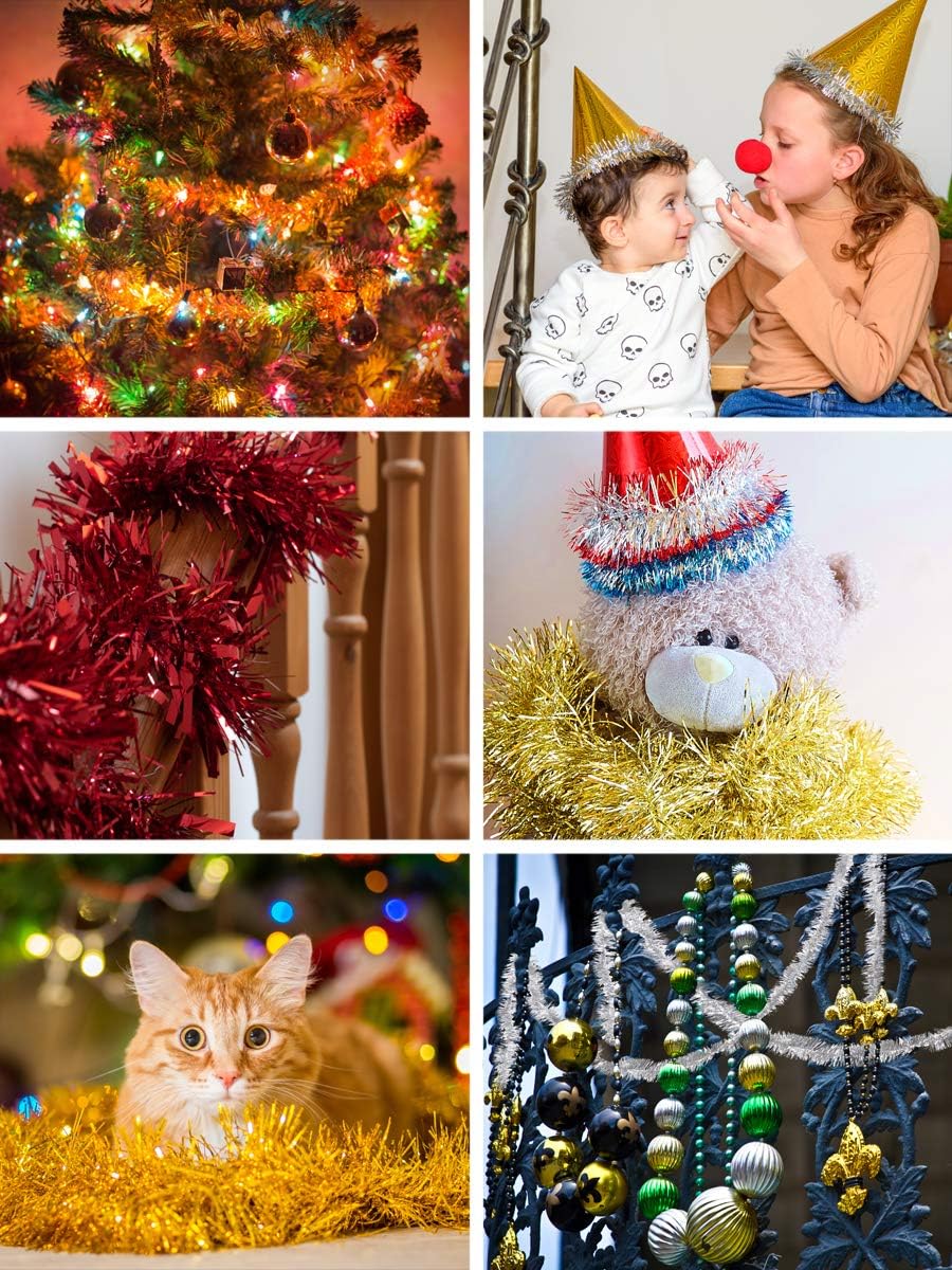 - Versatile Xmas Metallic Garland: The iridescent garland tinsel is perfect for iridescent Christmas tinsel garland decorations, mini garland for mini tree, miniature Christmas tree garland, & tinsel and garland for New Year, Thanksgiving, birthday, & parade floats.