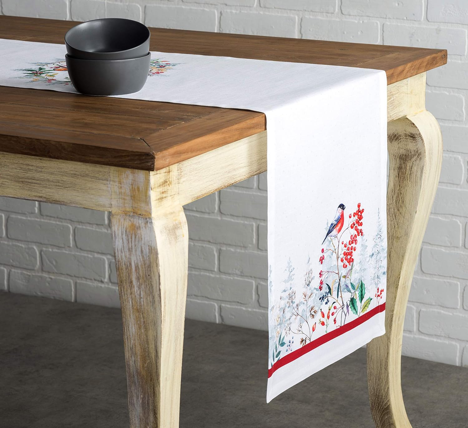 Maison d' Hermine Table Runner 100% Cotton Single Layer Table Runners 60 inches Long for Thanksgiving Christmas Decorations Home Kitchen Dining Party Wedding (Morzine, 14.5" x 60")