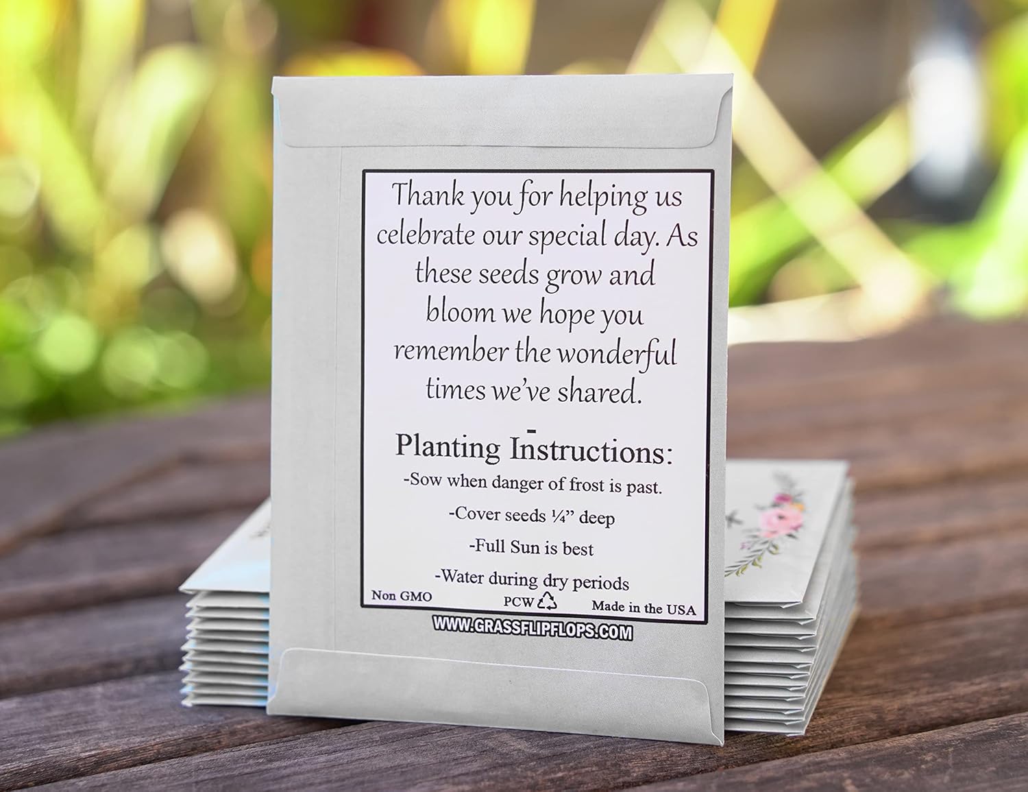 - WILDFLOWER MIX SEED PACKETS: This pack of wildflower mix seed packets is USA-made, having 1.76 ounces of seed packets. Seed Packets Measure 3.25” Wide x 4.50” High. Small and Lightweight. Wildflower seed packets printed on sturdy paper with a sharp glossy laminate that will catch your guest's eyes. You can hand them out individually or make them one of the centerpieces for your table, decoration, or theme