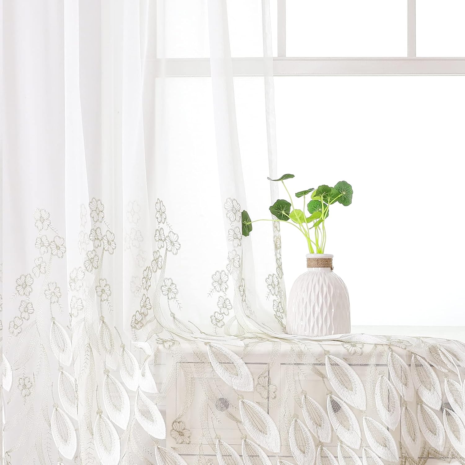 - 【FANCY EMBOSSED】 These elegant sheer curtains designed with relief leaves pattern, which features smooth fabric with silky touch and a beautiful drape that bring natural charm and luxury to your interior. Perfect for bedroom, living room, dinnning room or kitchen windows.