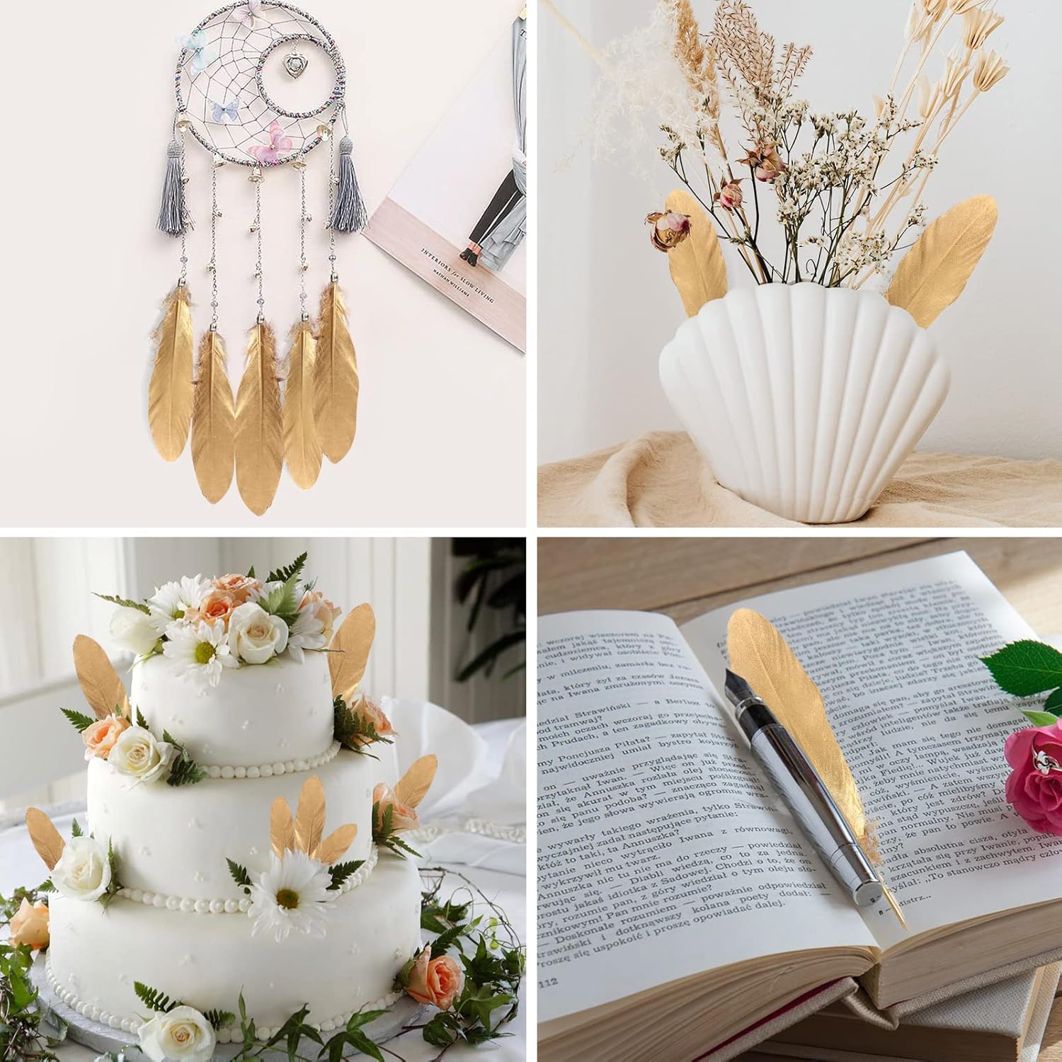 - 🦢 Applications: Bulk Goose feathers are perfect for wedding centerpiece, thanksgiving craft, feather garland,cake top decor ,Gatsby Party,masquerade decor etc. Luxurious feathers will make your party more beauty and romantic.