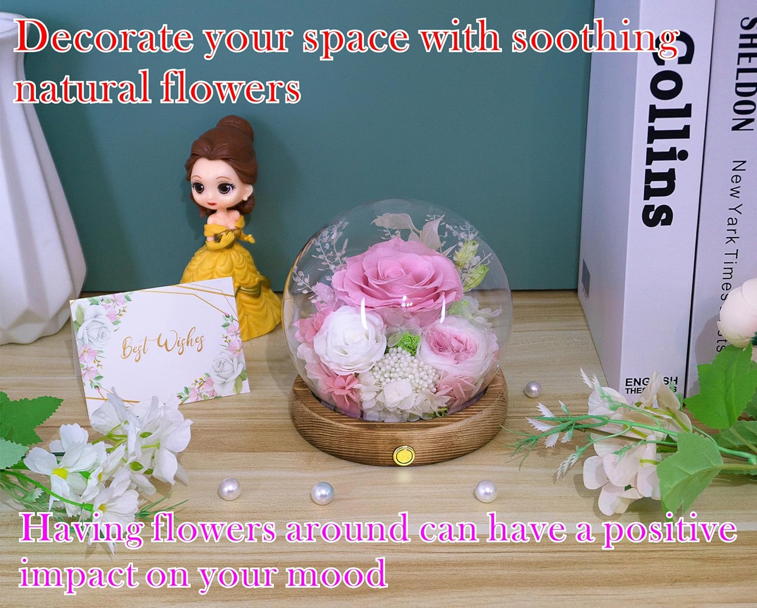 - ♥Please note♥:1. Due to the delicateness of natural flowers, opening the glass dome is not recommended as it can lead to unintended damage to the flowers. 2. Since these are real flowers crafted by hand and not mass-produced by machine, there may be slight variations in certain cases. 3. loose and incorrect battery insert will result in lights not turning on. If that's the case, simply remove the batteries and reinsert them correctly. 4. We've recently made new improvements to our products for you. For more details, simply go to the bottom of this page.