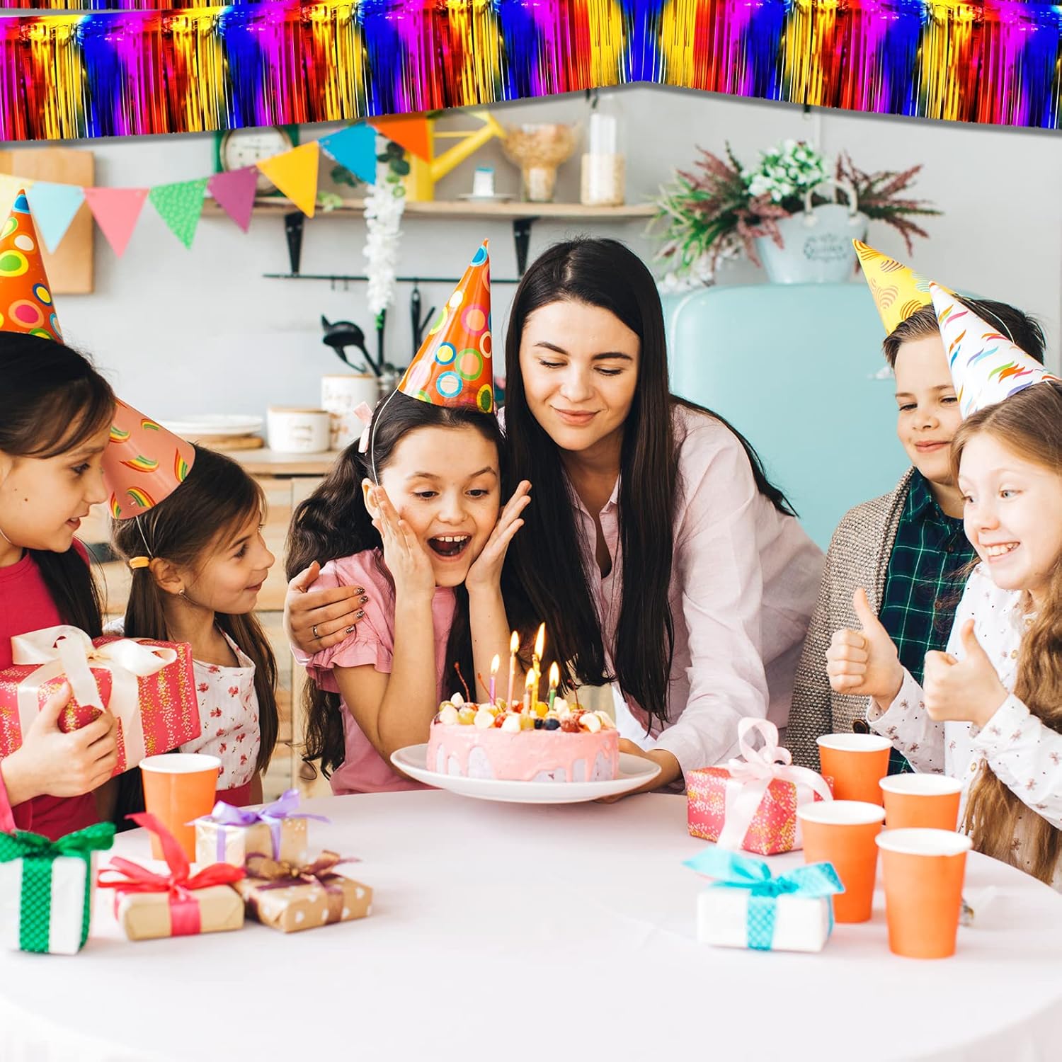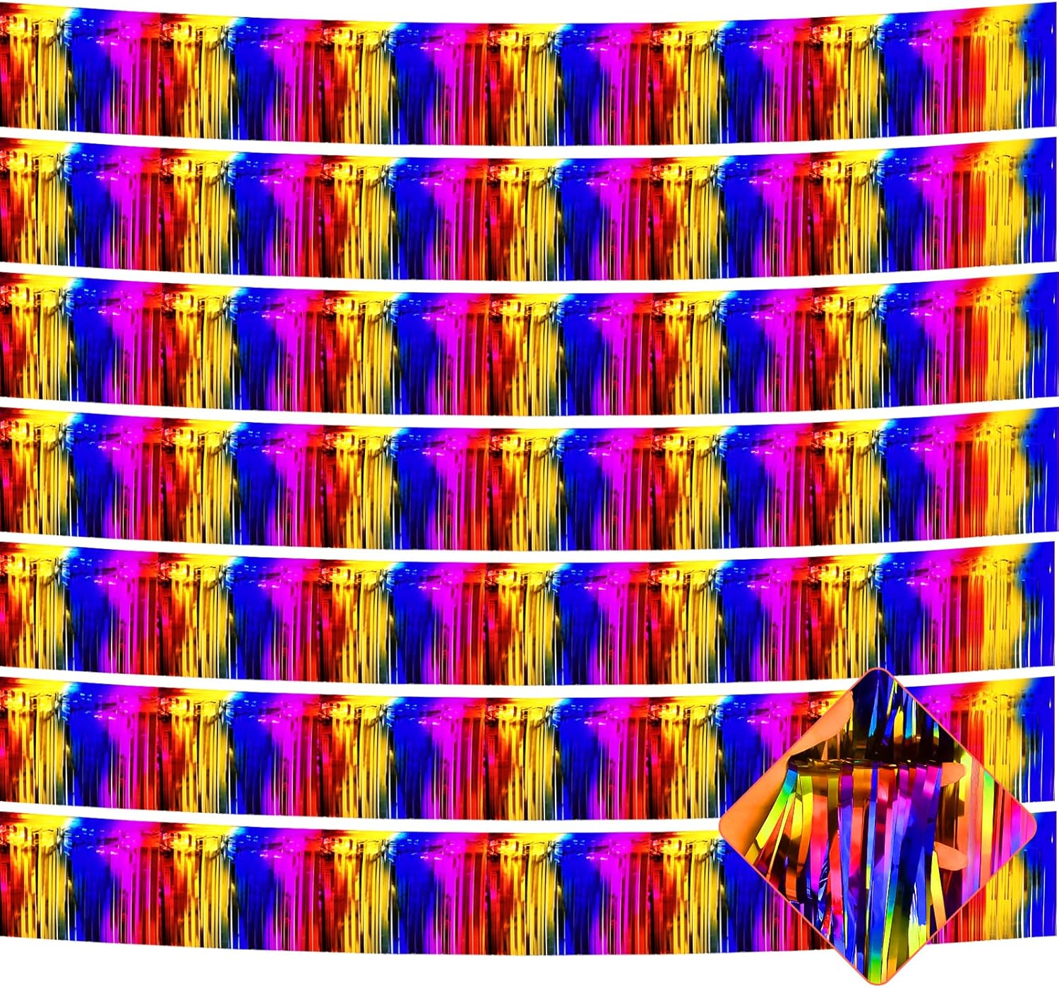 10 Pack 10 Feet Foil Fringe Garland Metallic Tinsel Streamers Banner Wall Hanging Curtain Backdrop for Parade Floats, Bachelorette, Wedding, Birthday, Halloween, Christmas Party Decorations(Rainbow)