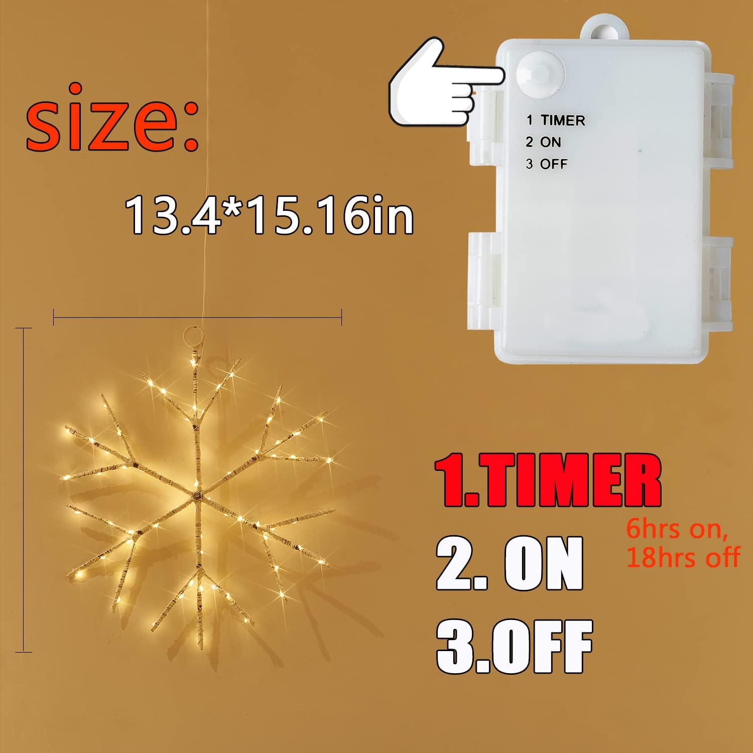 Fudios Lighted Snowflake LED Warm White Battery Operated with Timer 70L Fairy Lights 14in for Christmas Wall Window Winter Decoration Indoor Outdoor use