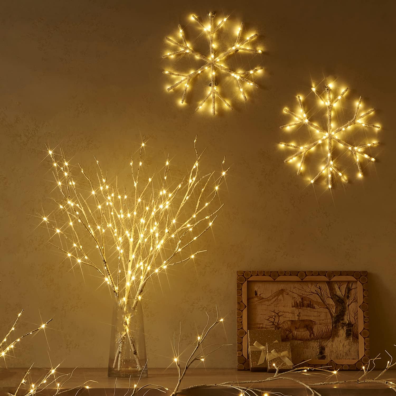 - π White snowflake : The LED snowflake covered with white bark texture are perfect centerpieces for wedding, party, Christmas decor,making your room like beautiful wild.(Not tape wrapped only)