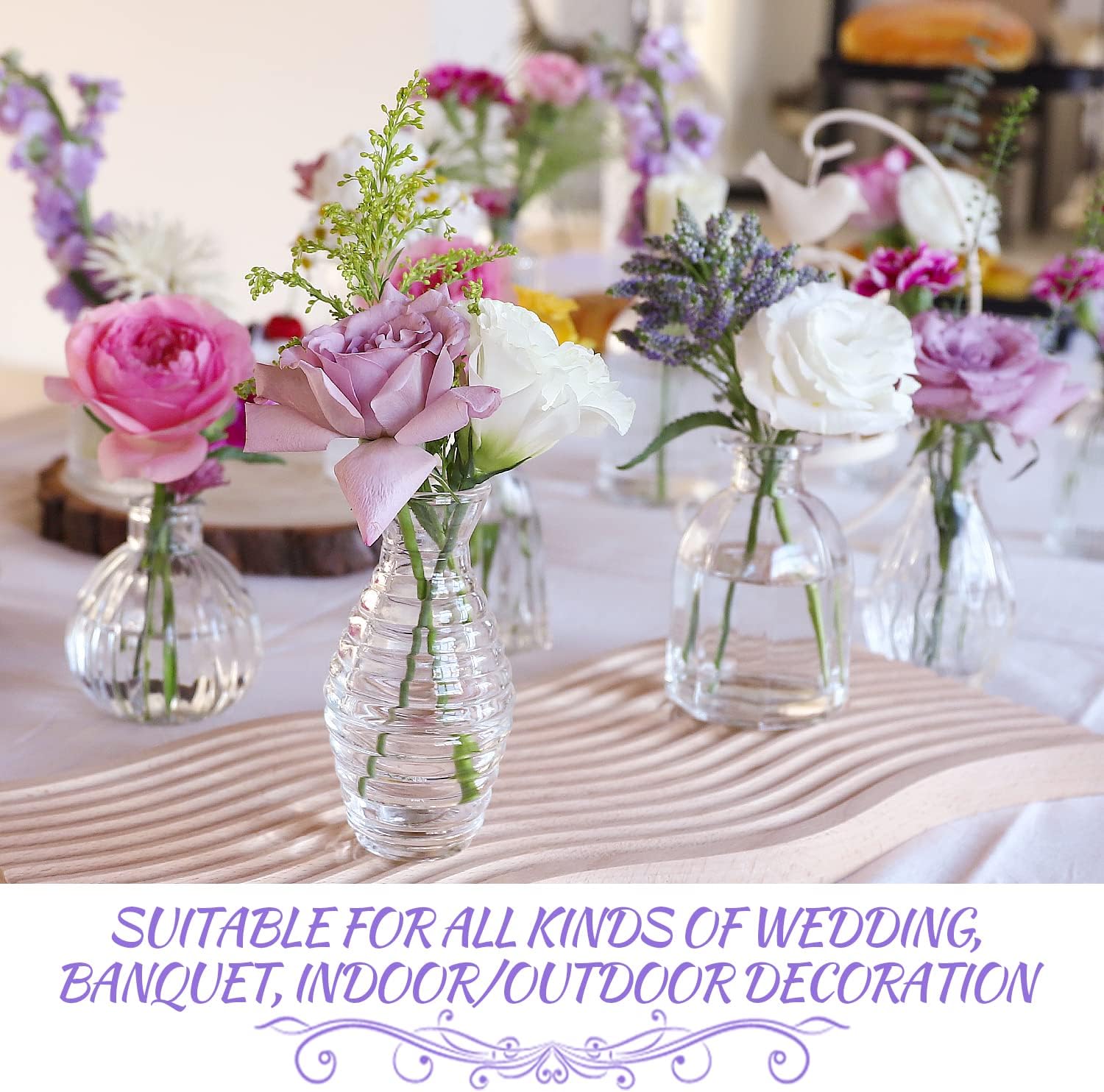 - 💐Glass Bud Vases Set of 12 - The mini bud vase in bulk come with 12 different shapes and sizes of small glass vases for flowers (please refer to the size chart). They are cute small vases for decor, the collections offer a variety for small arrangements, add an extra pretty cute touch to anywhere, especially for party centerpieces.