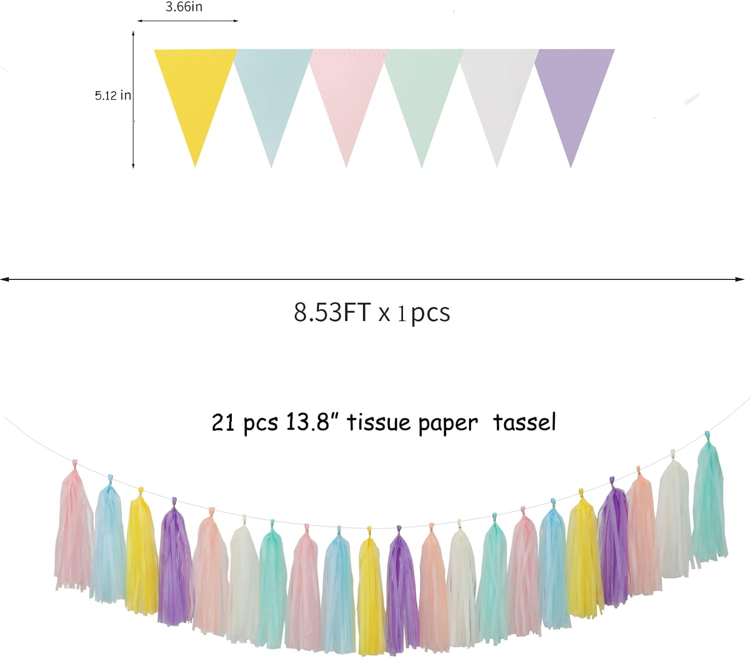 Pastel Rainbow Party-Decorations Supplies Streamers-Garland - 29pcs Baby Shower Birthday Wedding Tissue Pom Poms,Tassel Banner Backdrop Decor Bunting Lasting Surprise