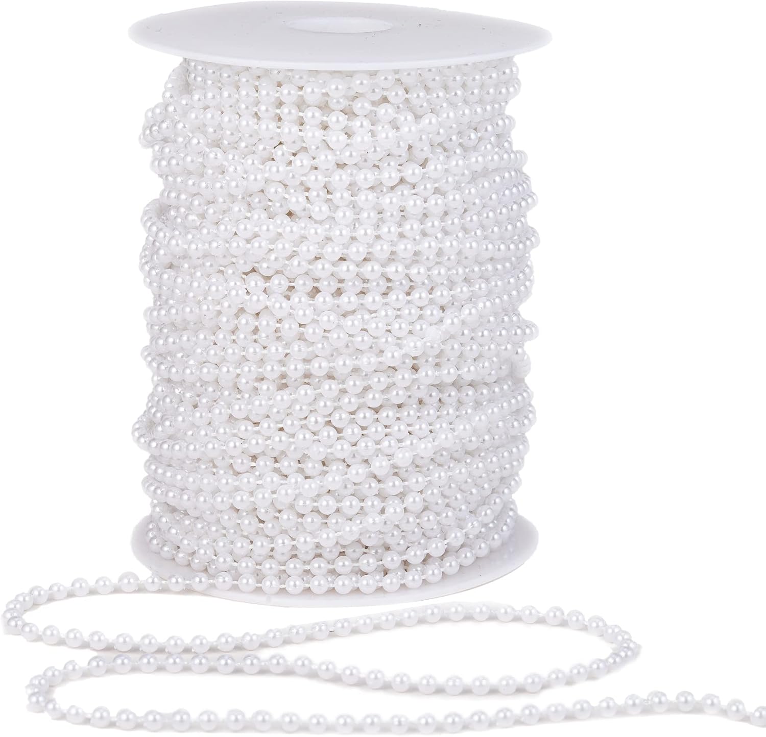4mm Crafts Faux Pearl Beads Garland Pearl Bead Roll Strand of Pearls to Decorate Floral Centerpieces Wedding Party Favor Christmas Tree(131 Feet White)