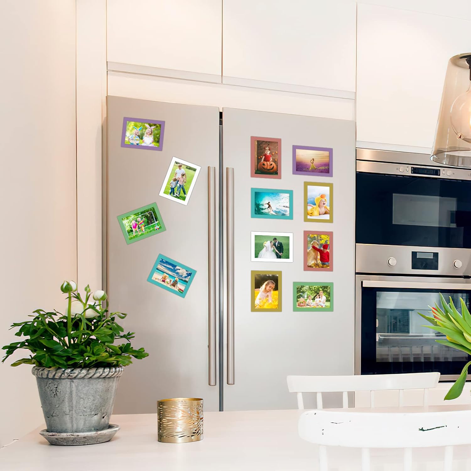 - 6 colors highlight your pictures, brighten your fridge, showcase your memories vividly. 12 packs of magnetic peel and stick frames meet your home decor and business needs at one time.