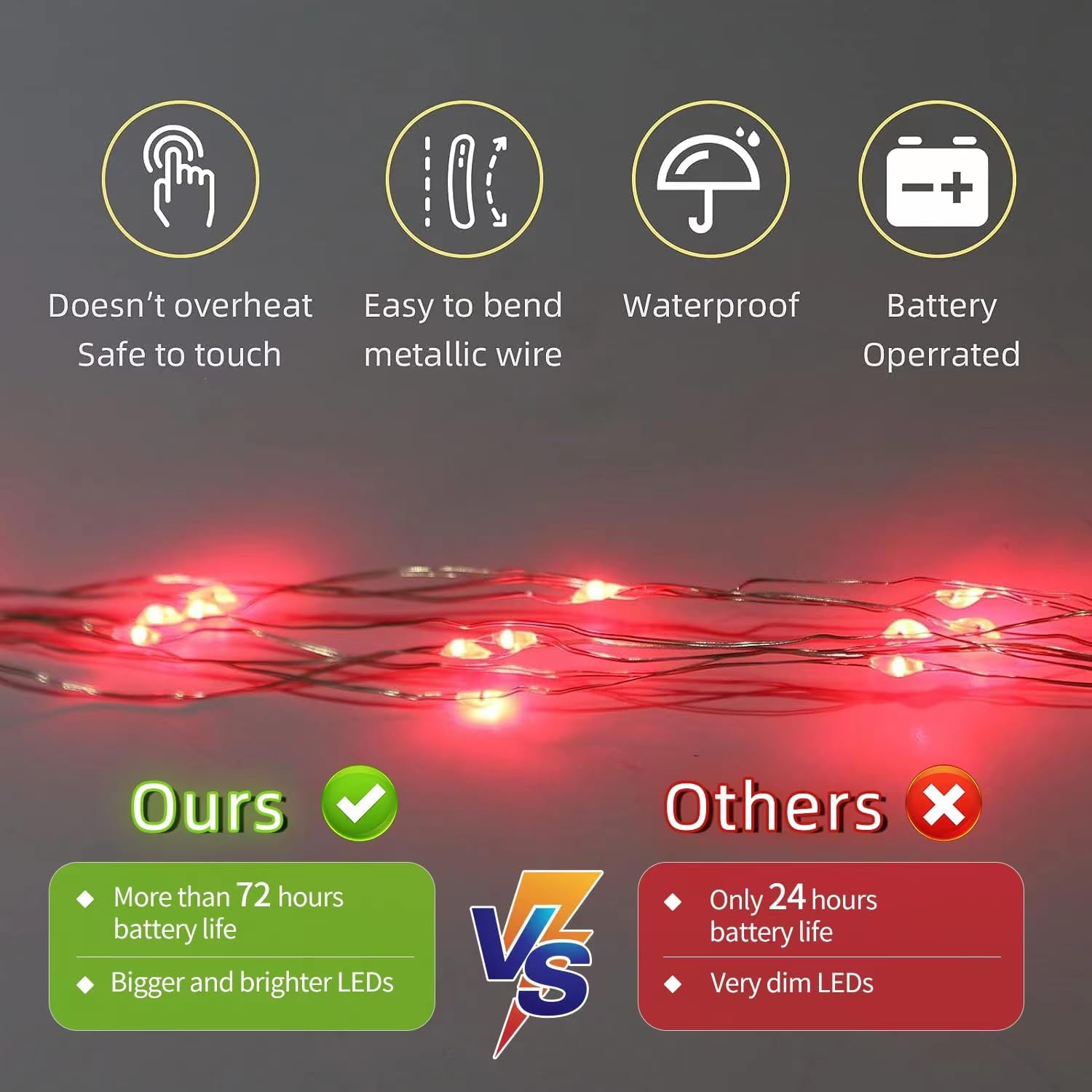 - 🌟【Long lasting batteries】The battery operated mini string lights pre-installed long life batteries,offering 72 hours constant use and will be longer if use with breaks; Comes with a mini screw driver ,very convenient for you to replace batteries.The battery compartment size is 2*0.87inches,each with a very small ON/OFF switch ,which is portable ,super easy to operate and hide.