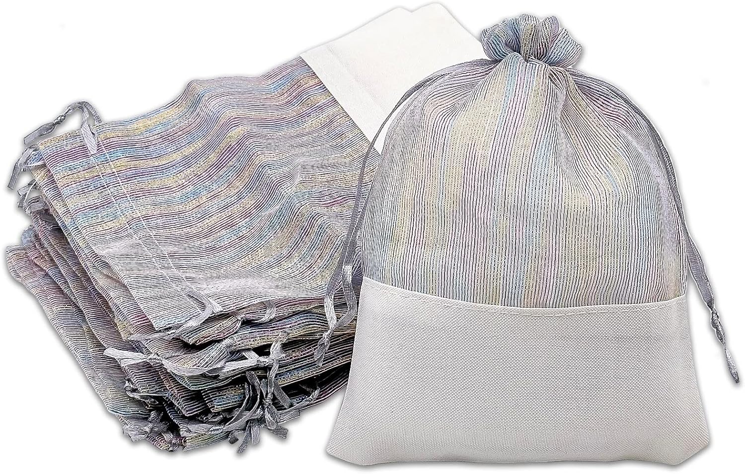 TheDisplayGuys For Your Modern Living 24-Pack Linen & Iridescent Organza Gift Bags with Drawstrings (Small 4 x 6) - Party Favors, Samples, Treats Mesh Pouches