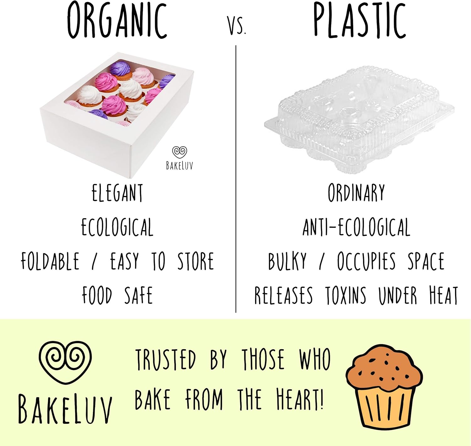 - 🧁 ELEGANT DESIGN & EASY ASSEMBLY: BakeLuv Cupcake Carrier feature a beautiful clear window design to showcase your delectable treats. Auto-Popup means assembly is not required; simply unfold the box and it will pup-up into shape so you can pack your delicious treats; no tools, glue or special skills are required – saving you precious time for baking and sharing!