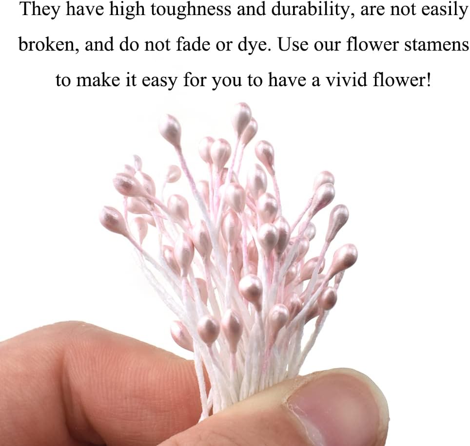 - Materials: Our 100% hand-made pearl flower stamens are made of high-quality gypsum and flexible cotton thread. They have high toughness and durability, are not easily broken, and do not fade or dye. Use our flower stamens to make it easy for you to have a vivid flower!