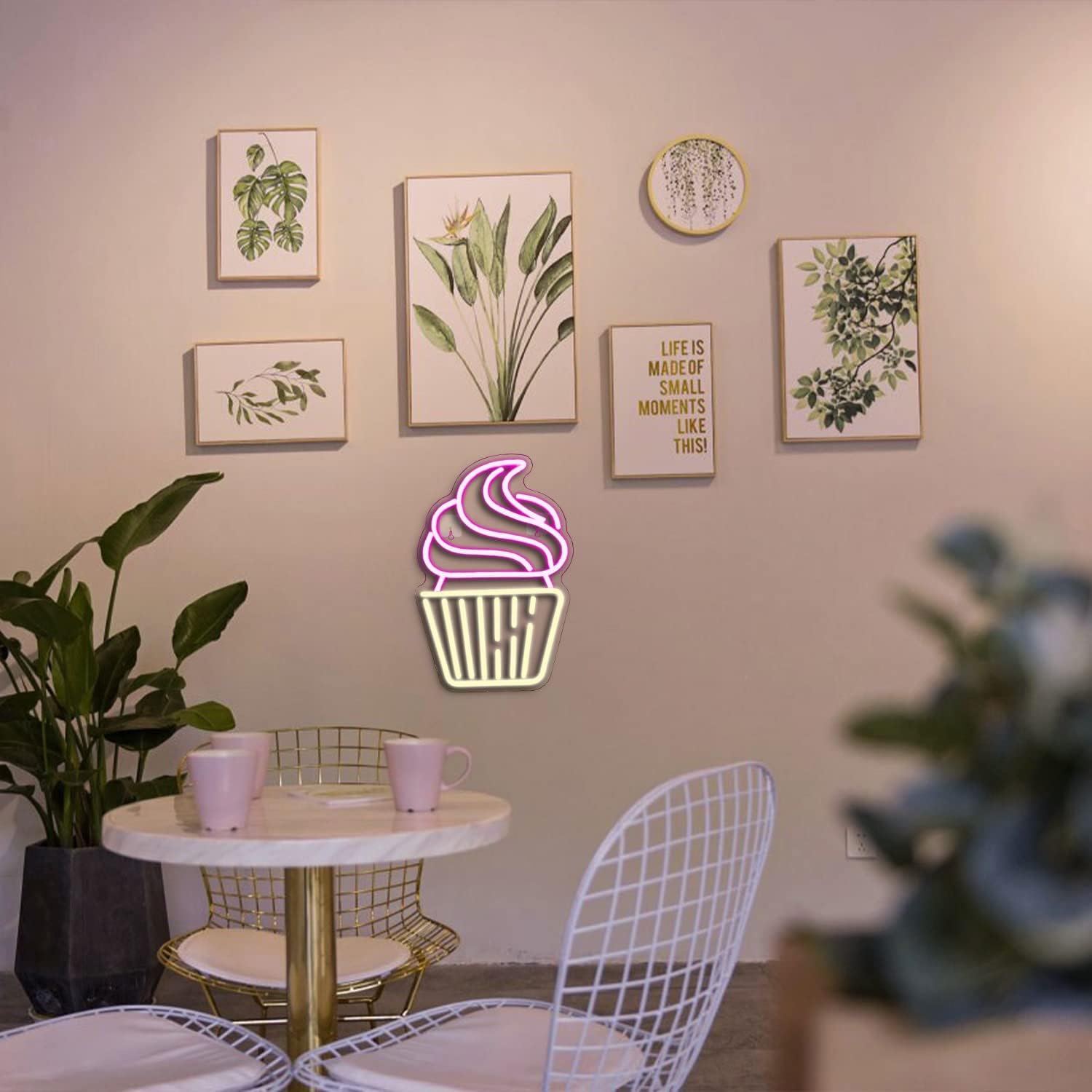 - CUTE CUPCAKE NEON SIGN: Cute cupcake-shaped neon lights as cake shop decorations can catch people's eyes! It adds color to boring walls and creates a warm atmosphere.