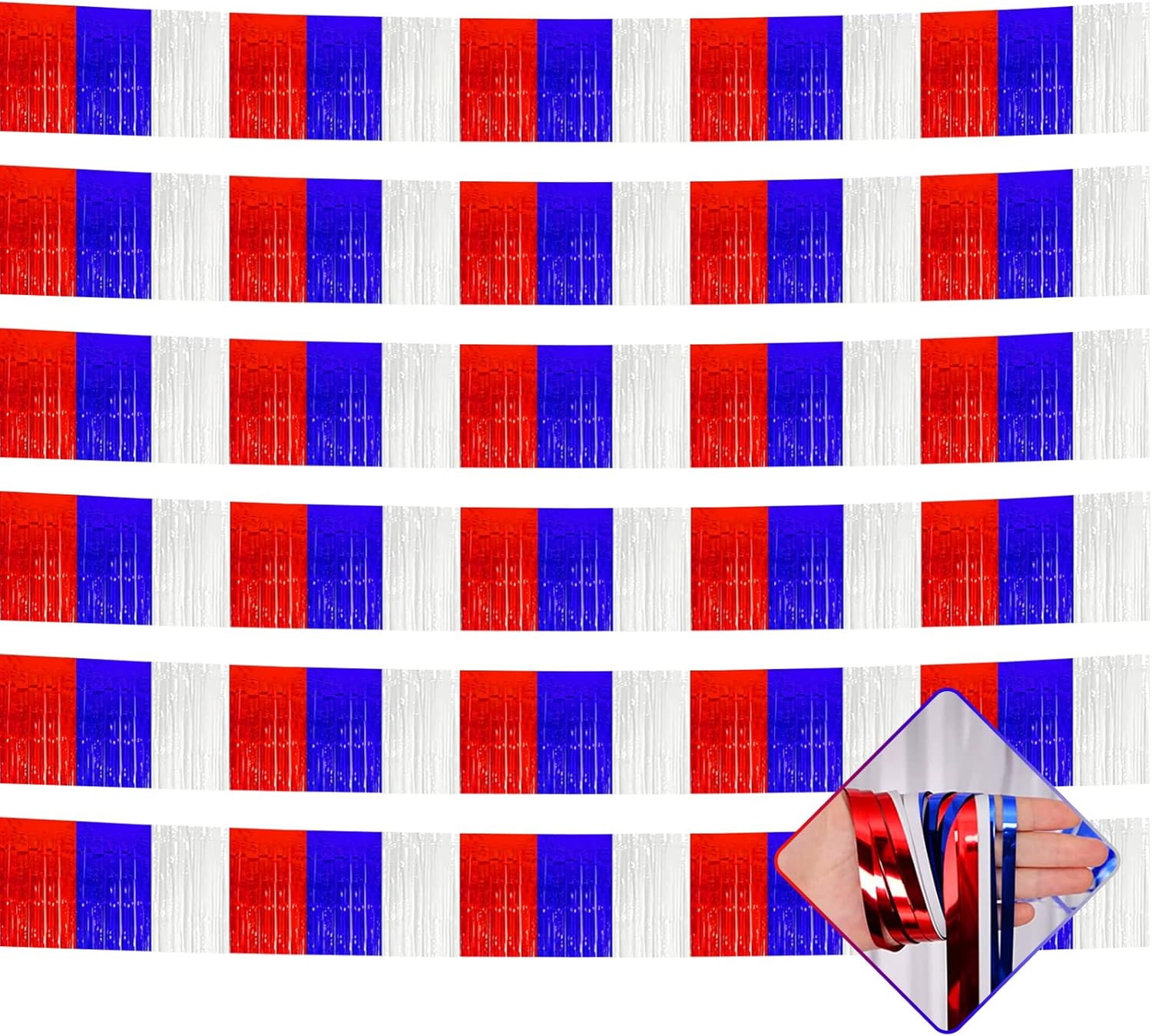 10 Pack 10 Feet Foil Fringe Garland Metallic Tinsel Streamers Banner Wall Hanging Backdrop for Parade Floats, Bachelorette, Wedding, Birthday, Independence Day Party Decorations(Red Blue White)