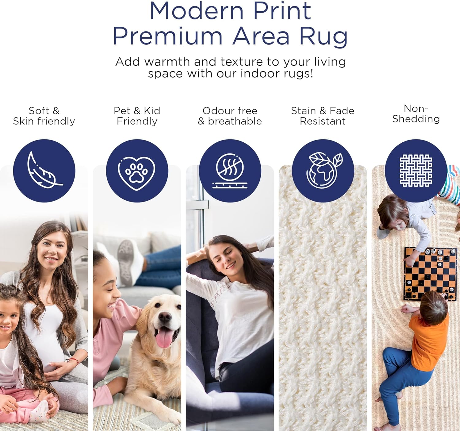 - Pet and Kid Friendly: Designed with families in mind, this area rug is pet and kid friendly, offering a safe and comfortable space for all. Its odor-free and breathable construction ensures a healthy environment in your living or dining room.