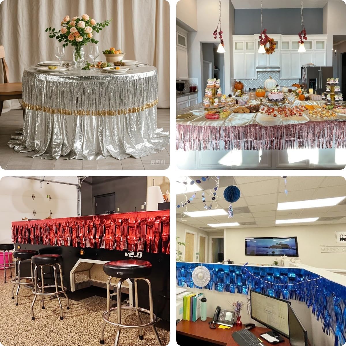 4 Pack Royal Blue Total 40 Feet Foil Fringe Garland Metallic Tinsel Banner Wall Hanging Drapes Parade Float Skirting Decorations for Trailer Mardi Gras Party Birthday Wedding Baby Shower
