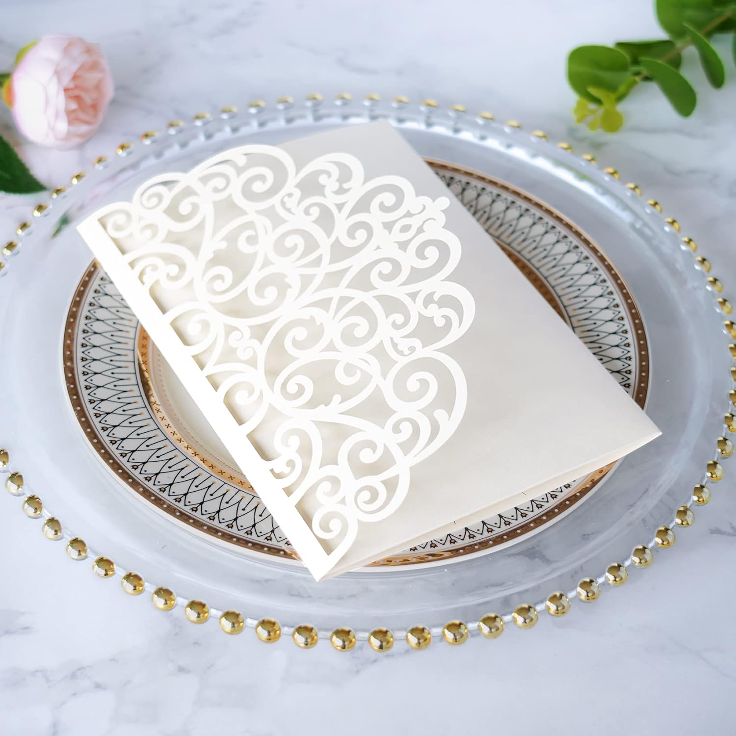 - 🥂【Package included】20 * Ivory Laser Cut Invitations POCKETS + 20 * Cream White Envelopes