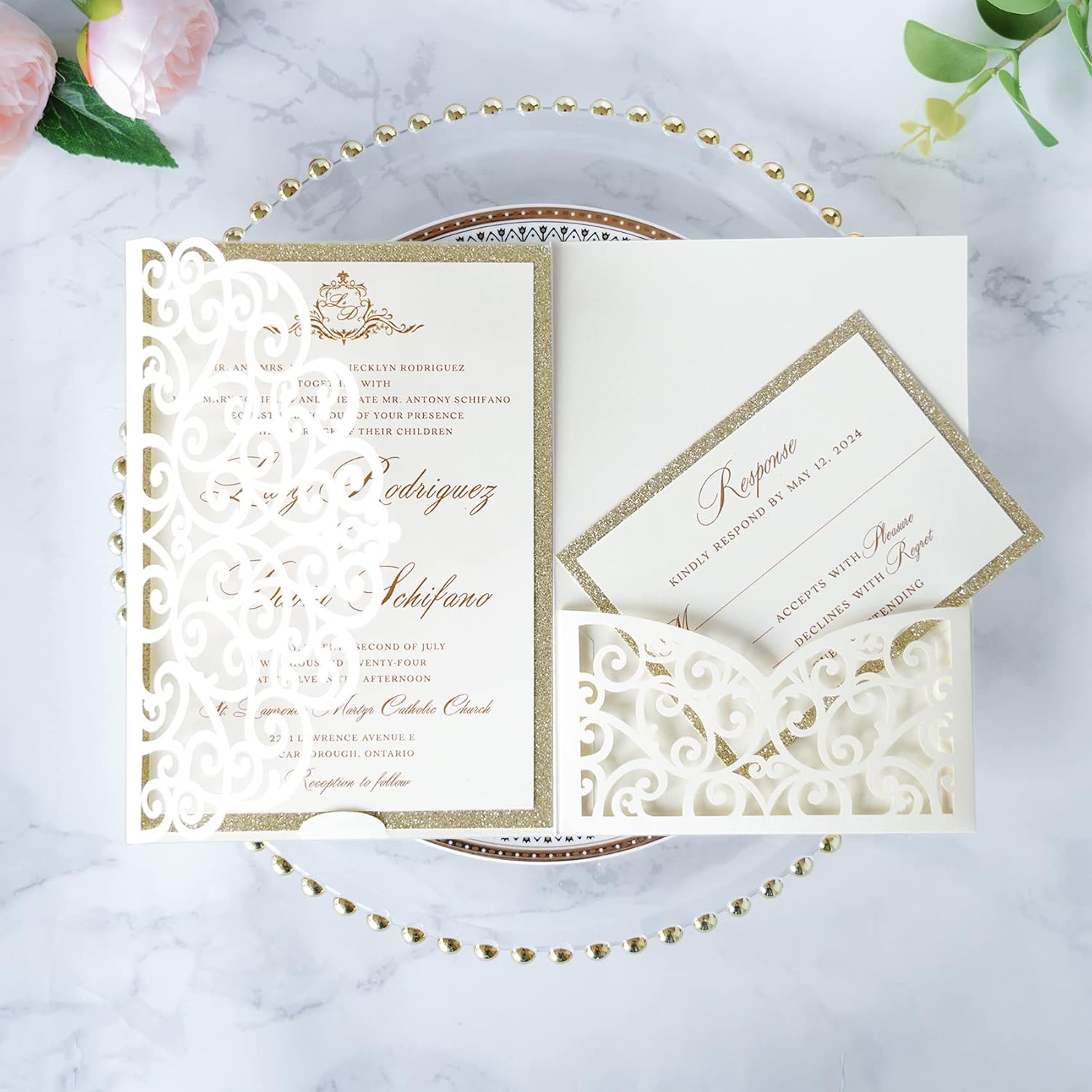 - 🥂【Occasion】Ivory laser cut wedding invitations cards is perfect for wedding, quinceanera, sweet 16, engagement, anniversary, festival, bridal, baby shower, birthday graduation, ect.
