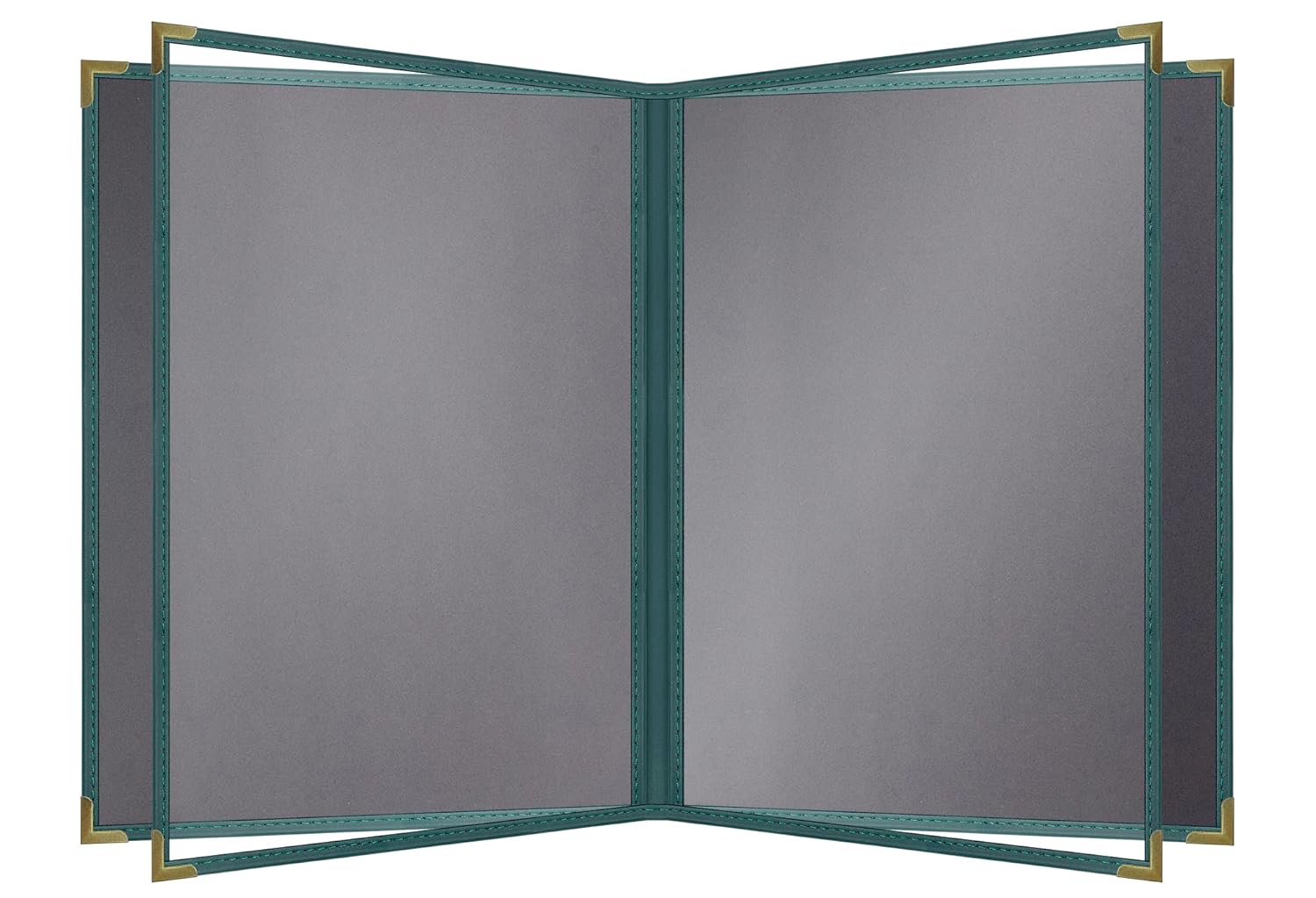 Goodsmart Pajco Style Restaurant Menu Covers – Pack of 10, Side-Loading Menu Holders, Single Stitched Edge, Clear Vinyl Menu Sleeves, Leatherette Trim, Gold Corners, Green, 6 View (8.5" x 11")
