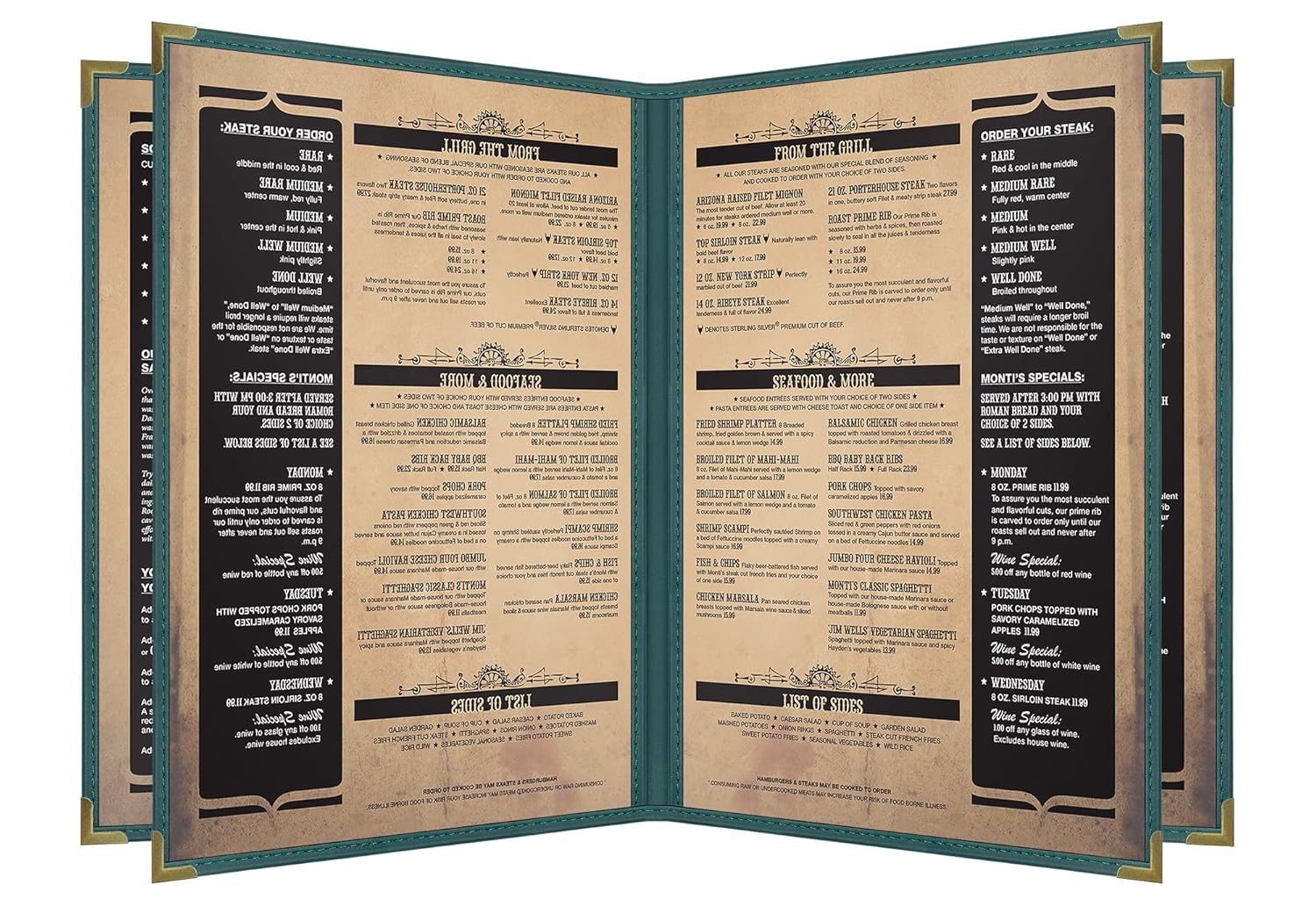 - MENU HOLDER AVAILABLE SIZES: 8.5" x 11", 8.5" x 14"; We offer a variety of menu cover sizes to meet your specific presentation needs, including 8.5" x 11" as a versatile standard size suitable for most menu types; 8.5" x 14" for larger menus with multiple categories.