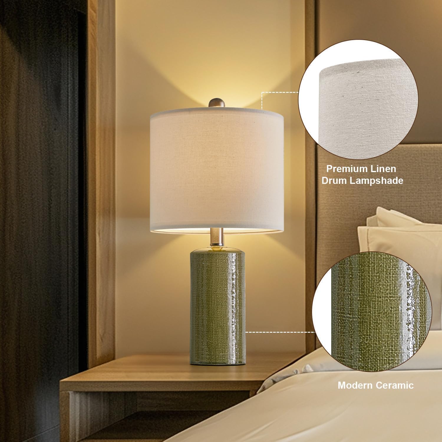 - Modern Design&Perfect Gift: A set of modern design ceramic table lamps with green and simple lamp body design. It can add an artistic touch to your home. Our bedside lamp is the perfect gift for family and friends