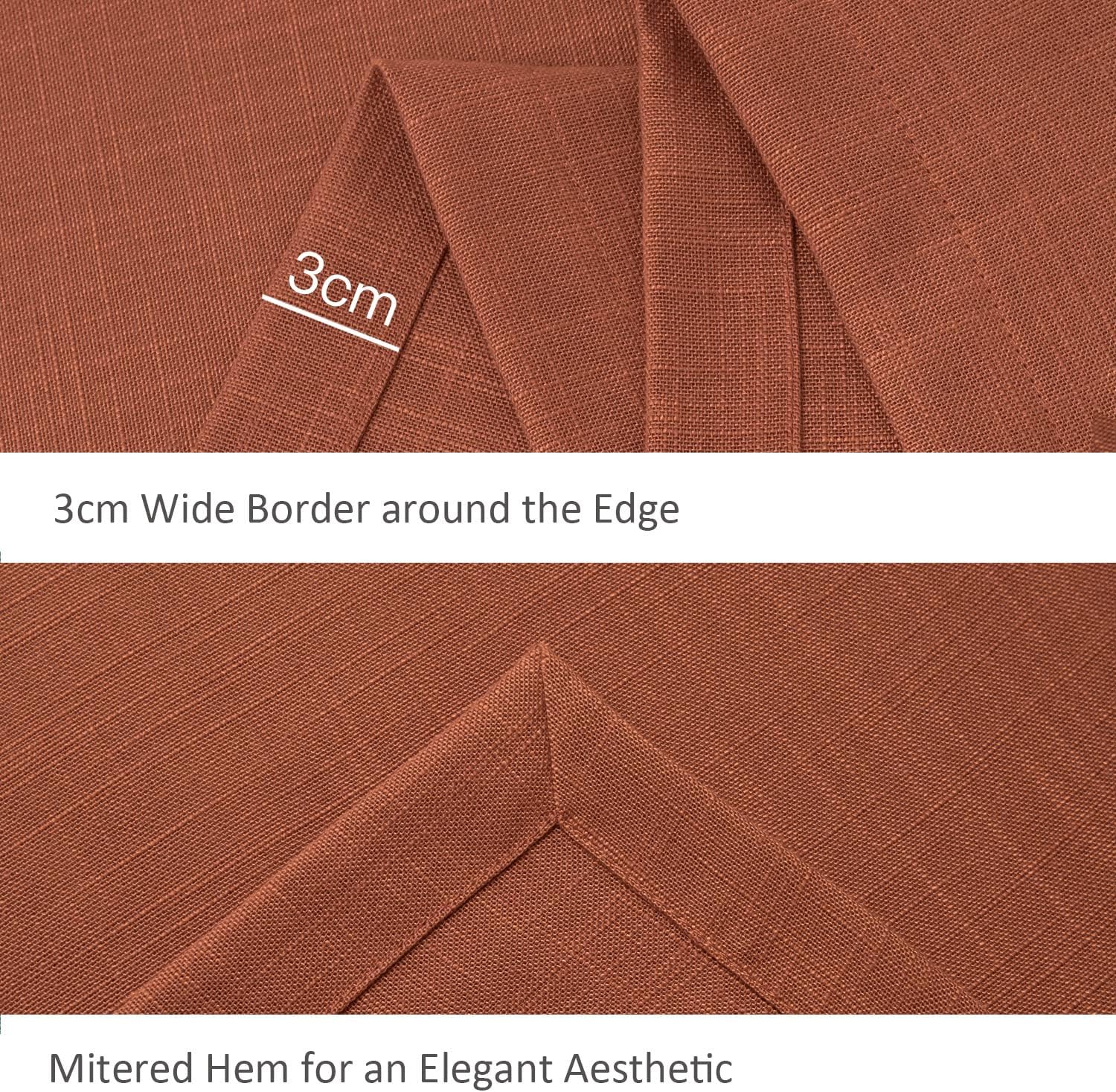 - Our table cloths are made of high-quality polyester faux linen yarn, with slubby texture. It is more durable than real linen yet soft and supple; while protecting table surface, our tablecloth also adds a sense of understated luxury to your dining scene.