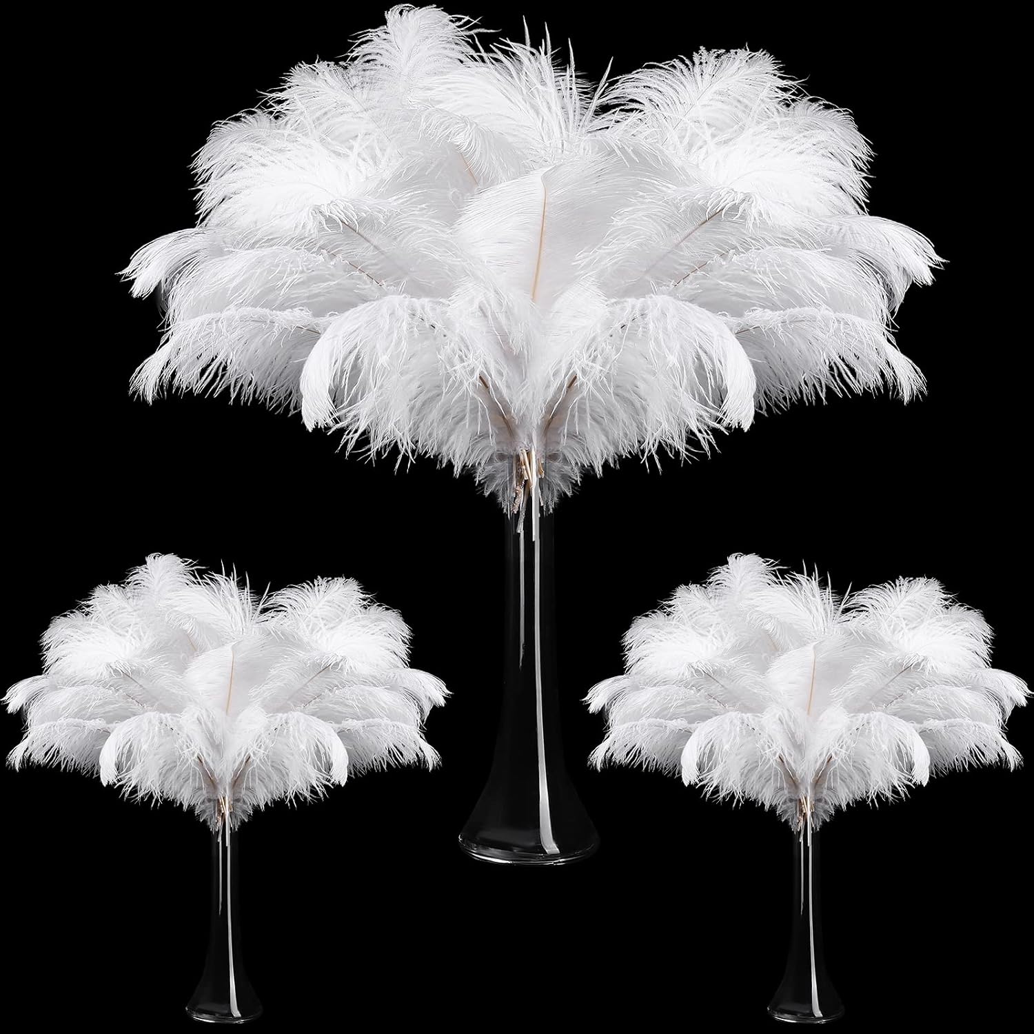 - Package Include: you will get 90 pieces large natural ostrich feathers in 3 different sizes, 14-16 Inch (35-40cm), 12-14 Inch (30-35cm), 10-12 Inch (25-30cm), 30 pieces of each size, enough quantity to meet your DIY usage needs, suitable for making many kinds of handicrafts or table decorations, create a romantic and beautiful atmosphere