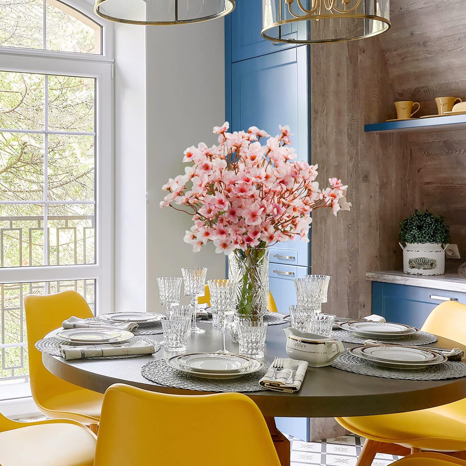 - 【Gifts for Mother's Day】The color of peach blossom branches is rich in layers, the petals of silk cherry are thin and transparent, each petal is naturally curved, the leaf texture is clear, and the leaf surface is shiny. Suitable for every season.