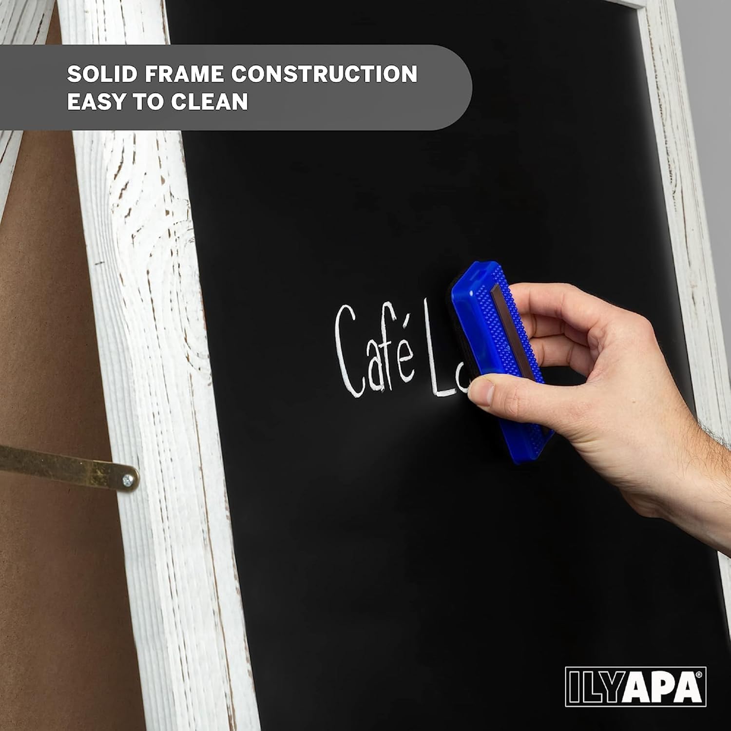 Ilyapa A-Frame Chalkboard Sidewalk Sign - 58 x 27 inches, Folding Standing Sandwich Sign – White Menu Display for Restaurant, Business, or Weddings