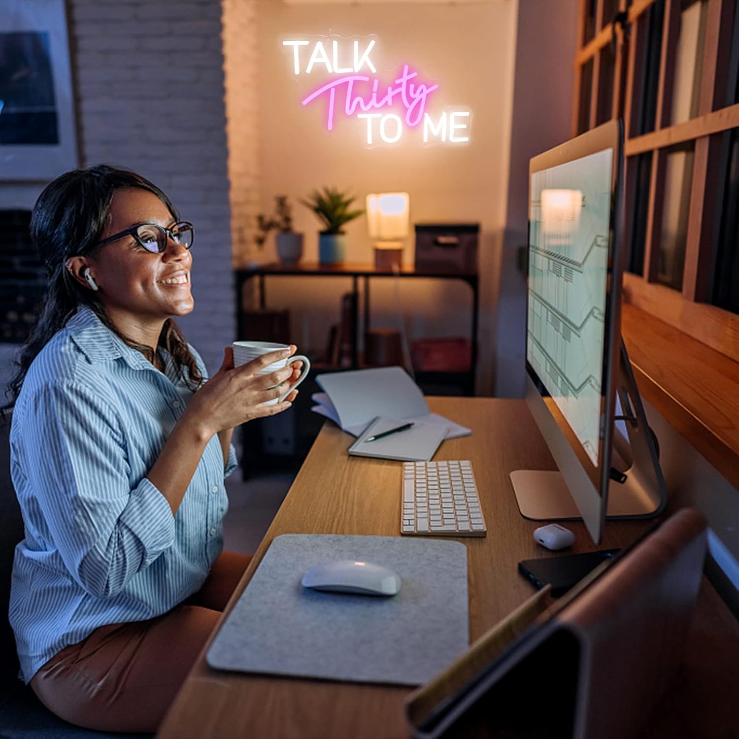- A Gift For Thirty:Lighten up your room or party with a pink white neon light like talk thirty to me. The larger neon light like talk thickness to me shows your personality and promotes the positive energy of 30 years old. Add a relaxed and pleasant atmosphere to your space. The size of neon sign is 40cmx24cm/15.7inx9.4in