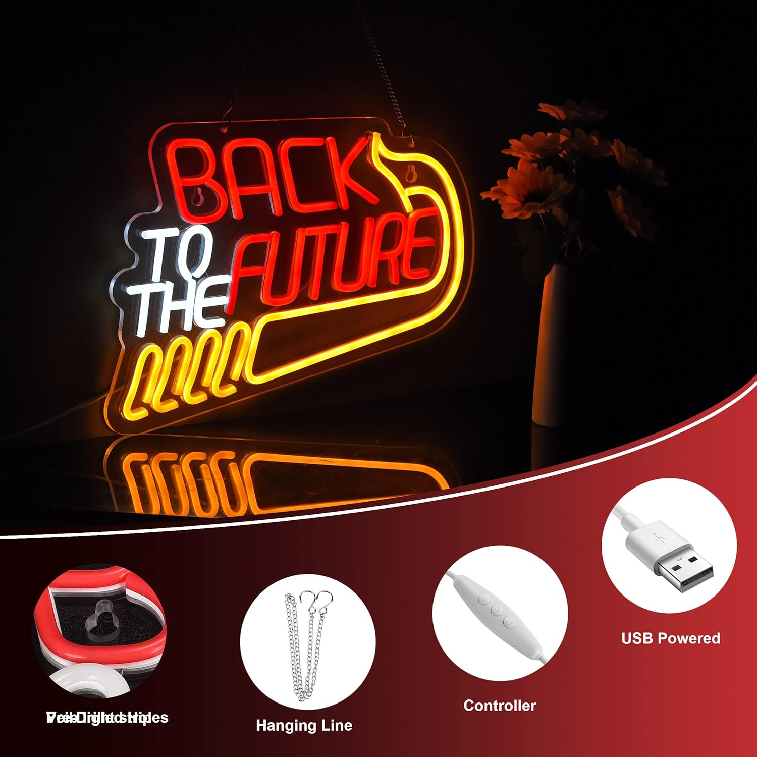 Back To The Future Neon Sign for Wall Decor Neon Signs with Dimmable Switch LED Neon Signs Bedroom Beer Bar Neon Light Sign Hotel Party Club Office Art Lights(17X12inch)