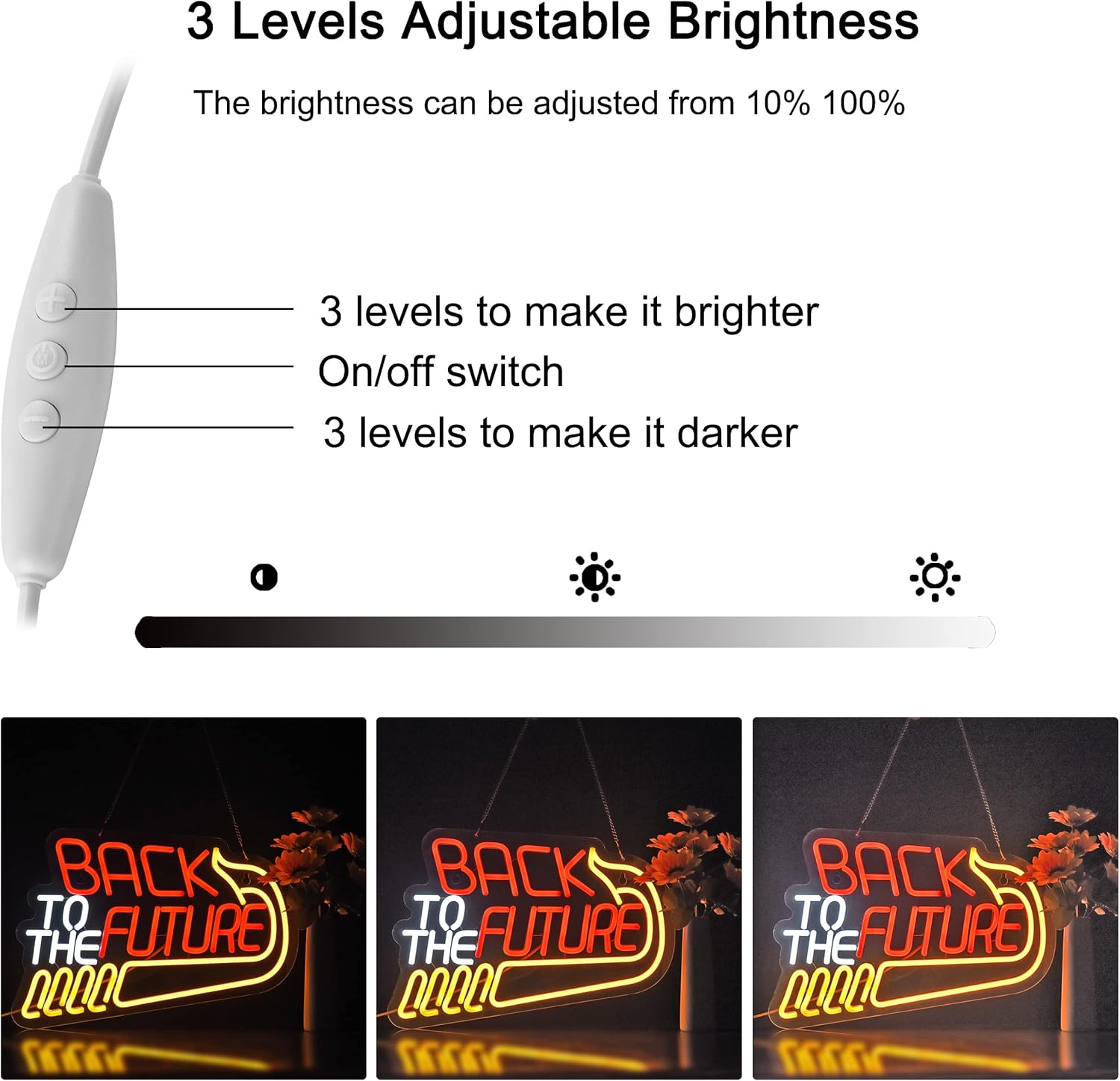 - The neon sign has dimmer on the switch , the brightness can be adjustabl
