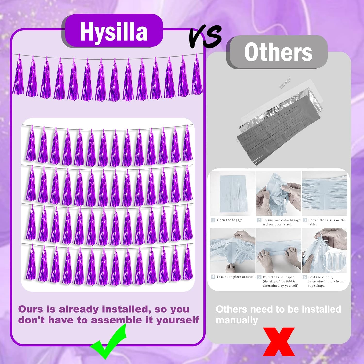 4P Purple Foil Fringe Metallic Streamers Banner Tassel Garland for Parade Floats, Bachelorette, Wedding, Birthday, Halloween, Christmas, Bridal/Baby Shower Party Decorations