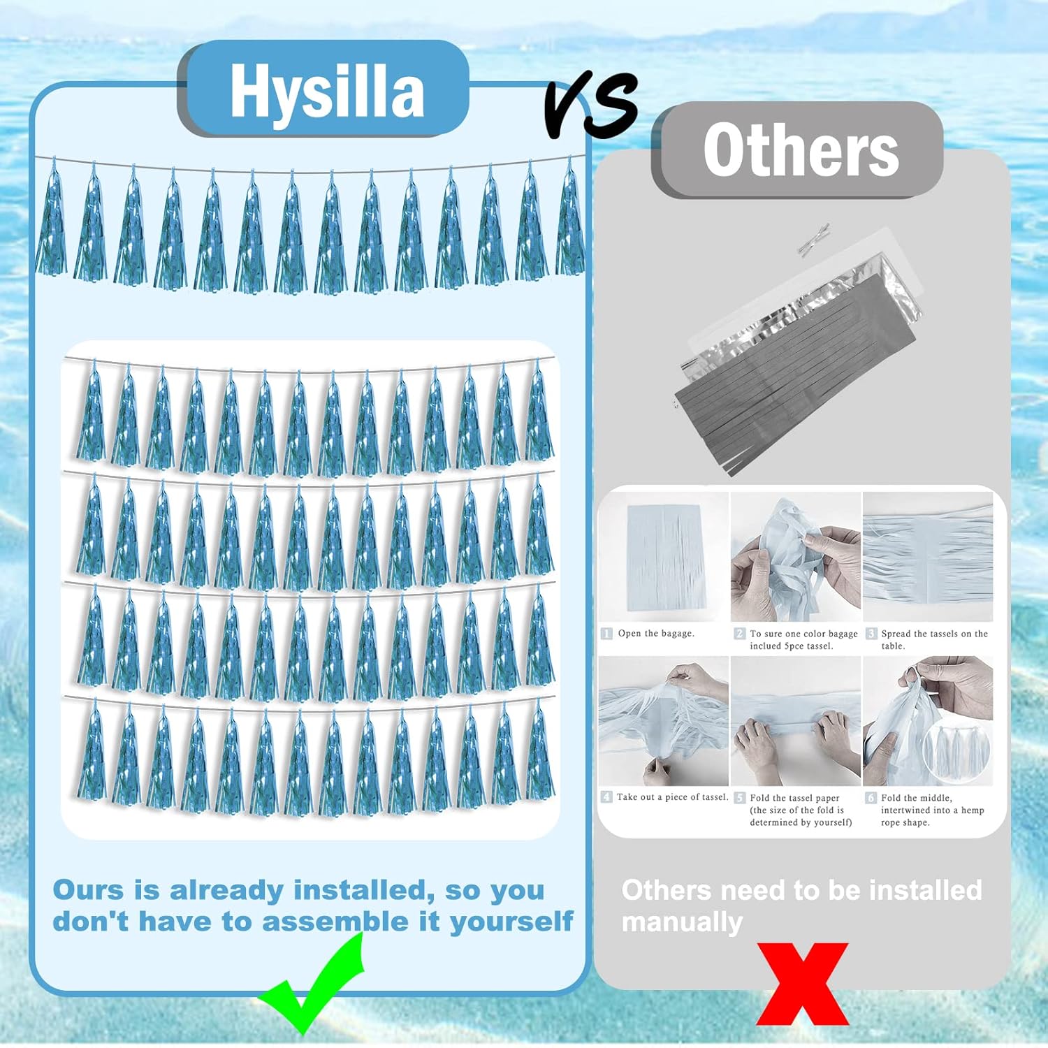 - 【Perfect Party Decoration】The light blue tinsel garlands are designed in a metallic Fringe, bright, and beautiful, at the same time, they shine in the sun, and these gorgeous tassel garlands create a wonderful backdrop or centerpiece for your party space. and bring you, your family, and your friend's good Visual effects. your party many emotional and touching moments where a lot of pictures will be taken and everybody will have a wonderful time together.