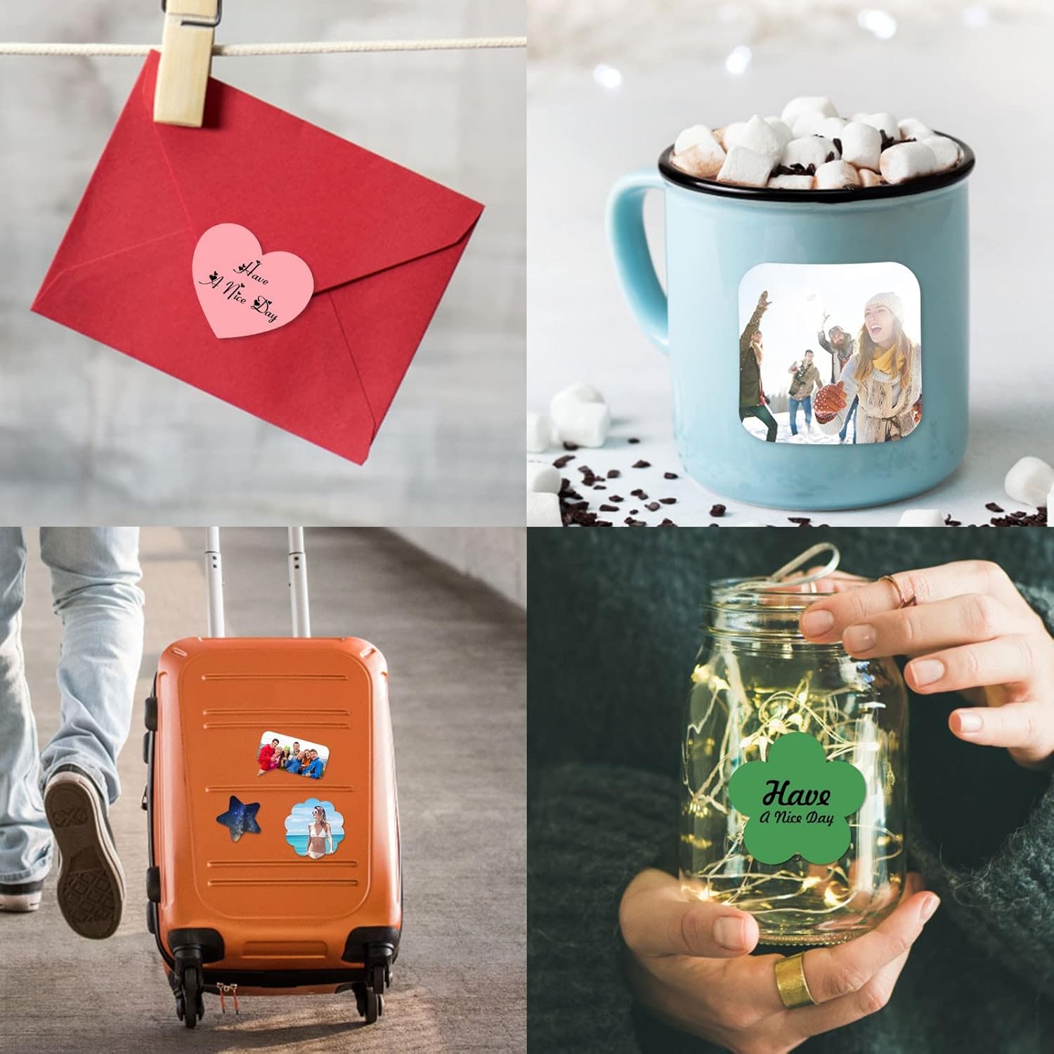 - Occasion: Our personalized stickers can seal holiday or birthday gifts, and labels for jars, bottles, coffee cups, bags, envelopes, computers, suitcases, etc.