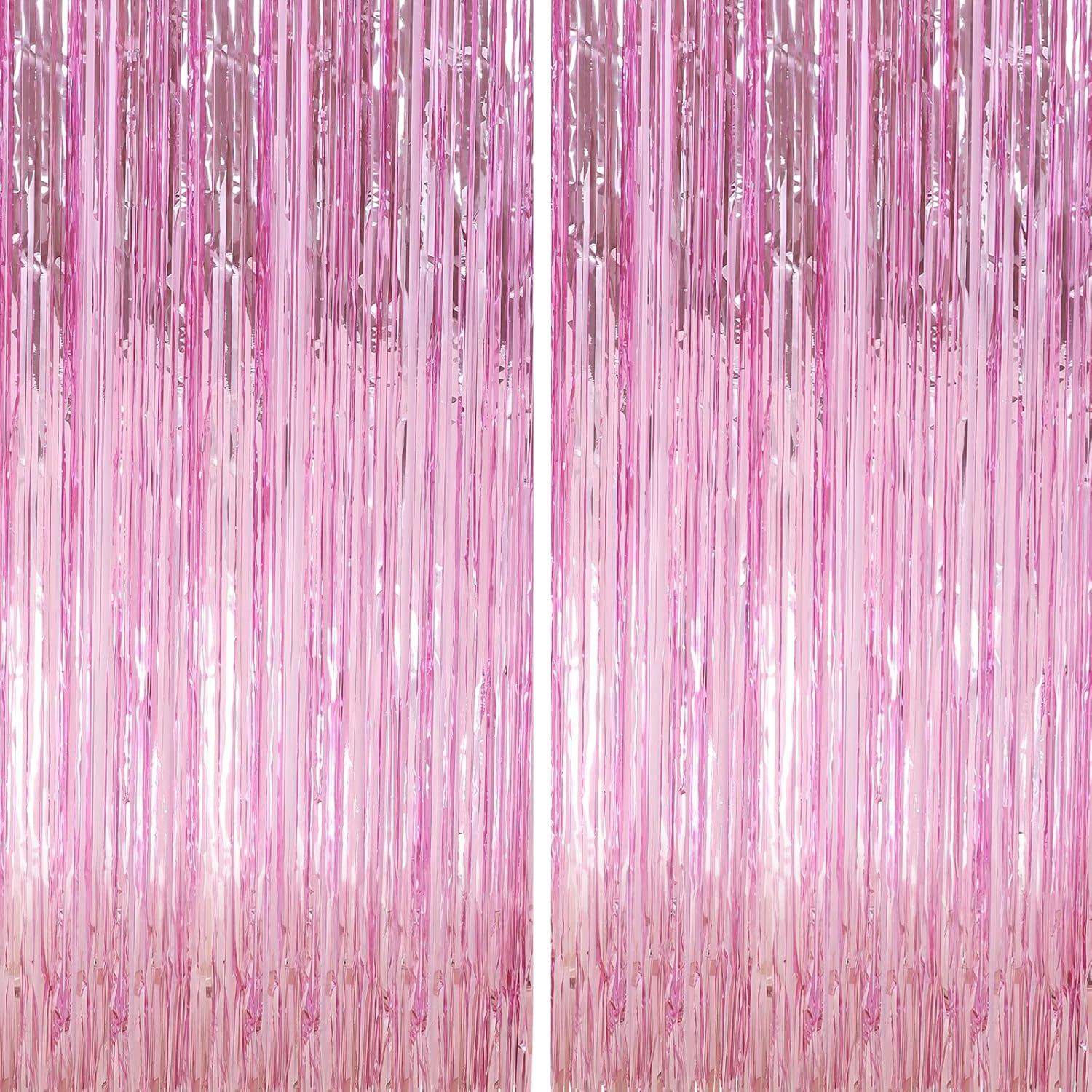 - Easy to Use - The foil curtain backdrop comes with double sided tape on the top, peel plastic strip off and it would be very easy to paste on smooth surfaces such as wall, window, table, door or anywhere you like. You can cut the foil curtain with scissors into the suitable Length, assemble the party streamers side by side to make the pink backdrop larger, or layer the backdrop curtains to get a thicker effect.