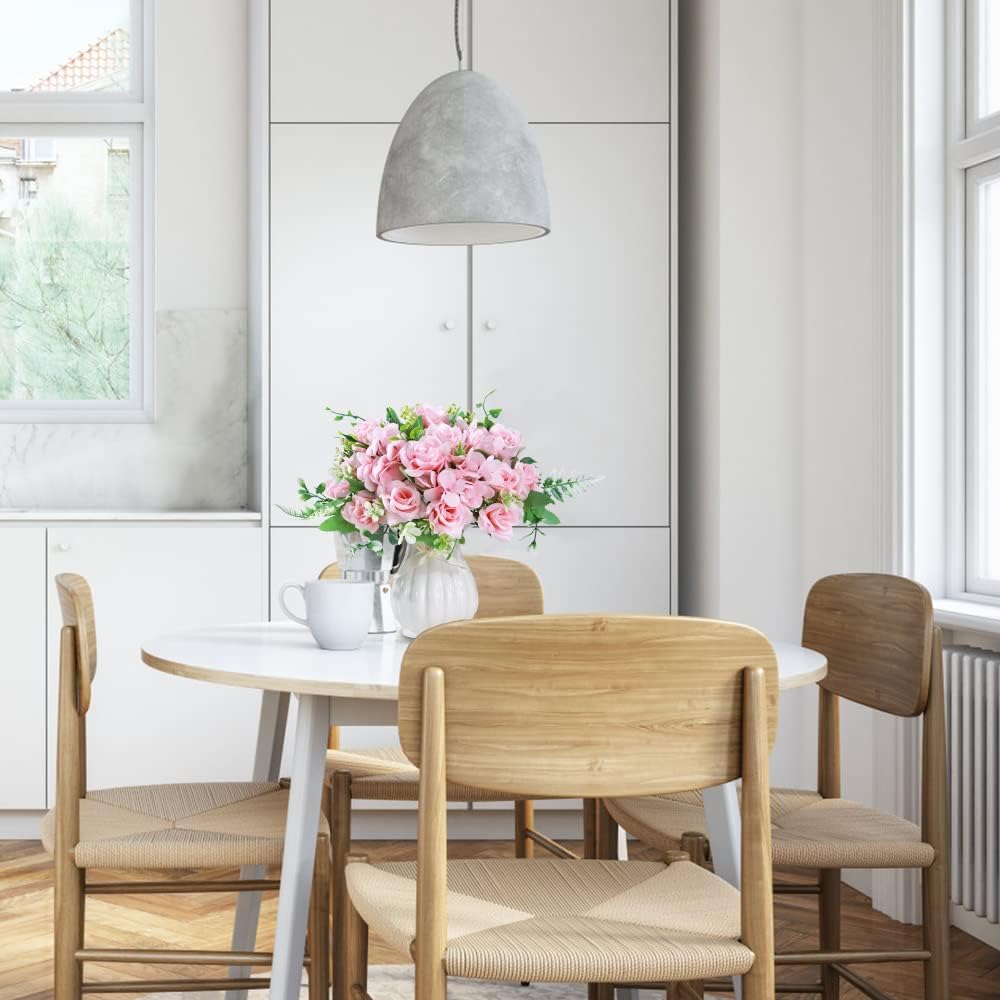 - [ MATERIAL ]: Artificial silk flowers and leaves,wire wraped in plastic stem, Rose bouquets in ceramic vase.