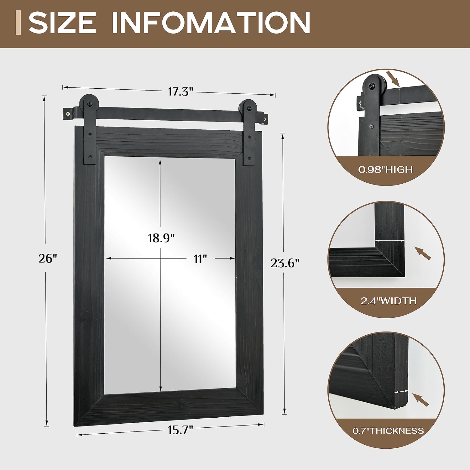 COGOOD Farmhouse Barn Door Mirror - 17 x 26 Rustic Wood Framed Wall Mirror for Bathroom, Living Room, Entryway Wall Decor (Black)