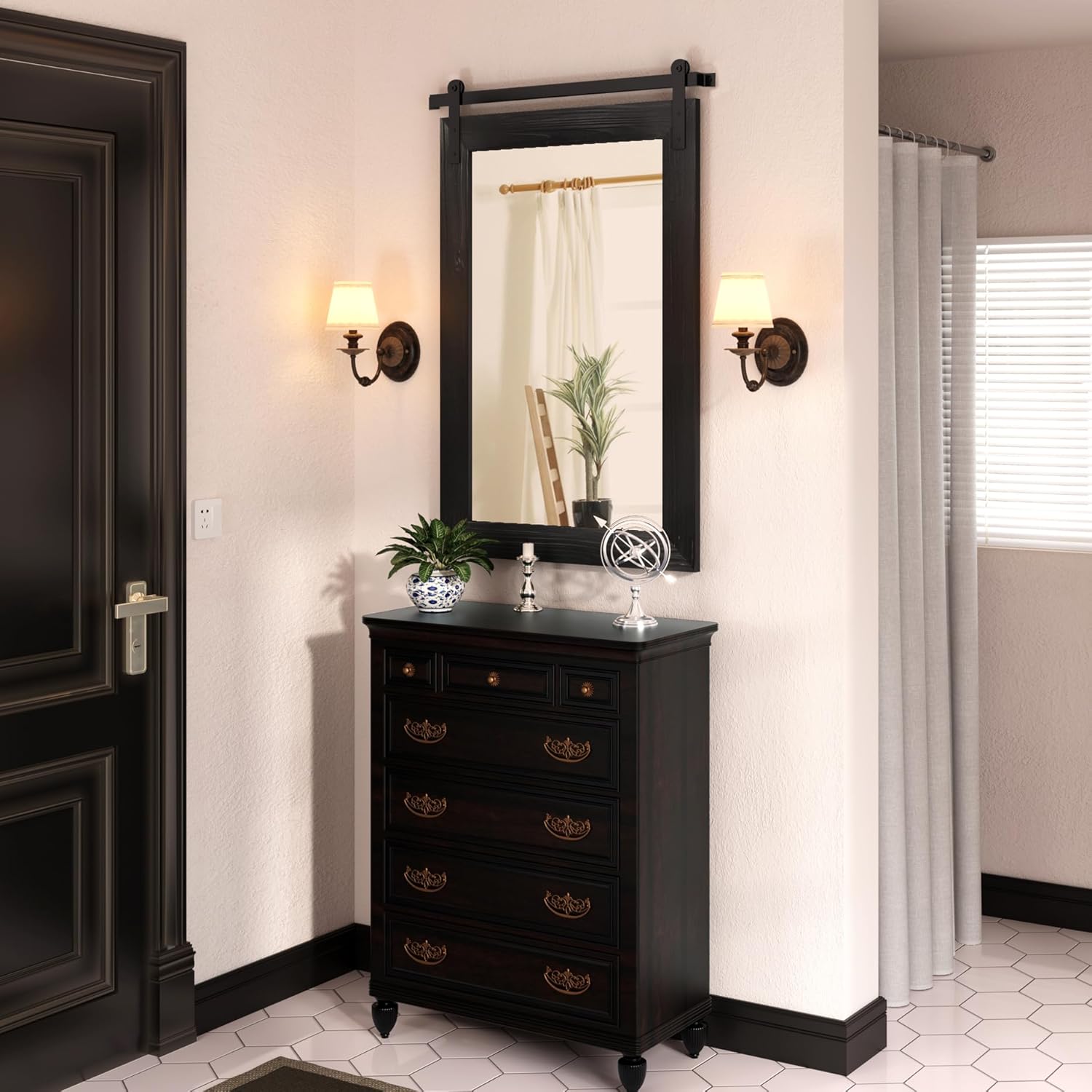 COGOOD Farmhouse Bathroom Mirror - 42 x 29 Rustic Barn Door Style Mirror for Living Room, Entryway, Vanity Wall Decor (Black)