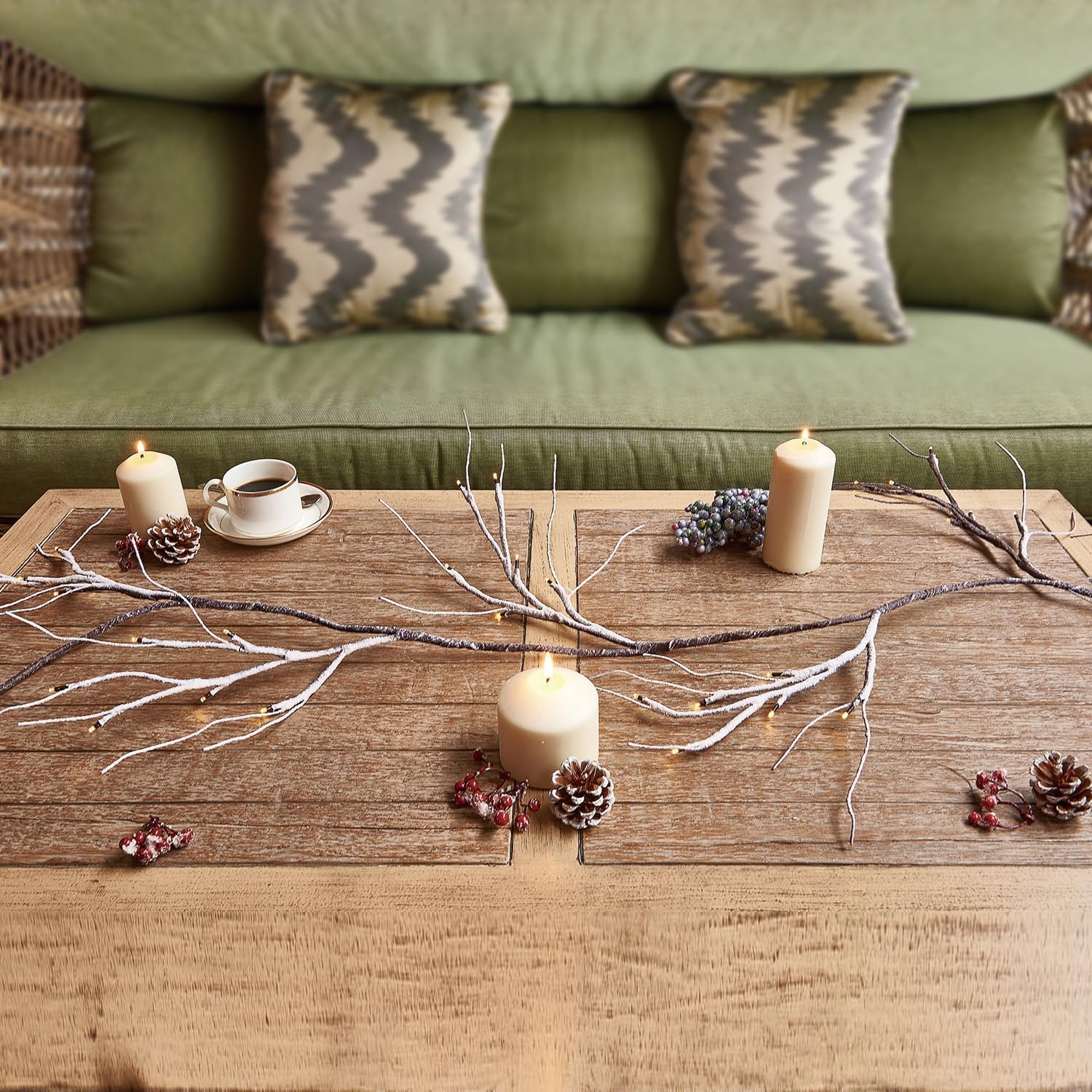 - Snowflake Design: Twisted branches with snow duste bark texture offer rustic natural appeal.