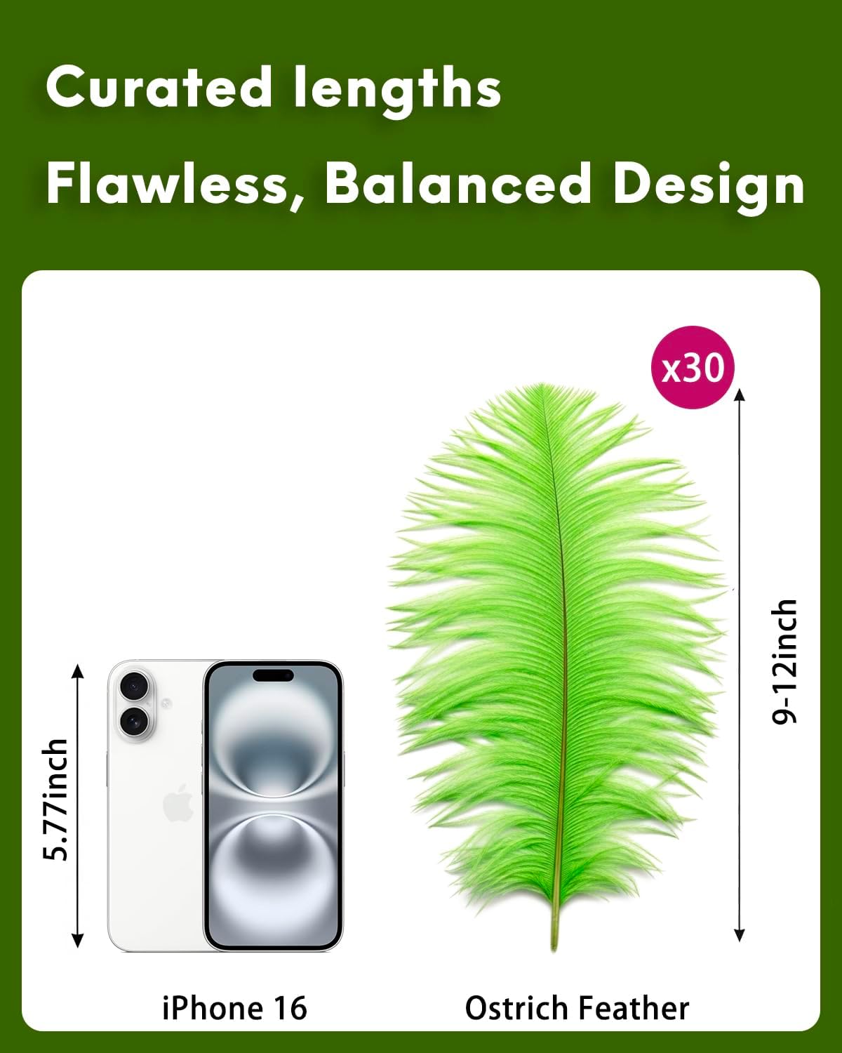 NEWONG 30pcs Fruit Green Ostrich Feathers Natural Bulk 9-12inch(23-30cm) Vase Craft Wedding Home Party Centerpieces Christmas Day Decoration