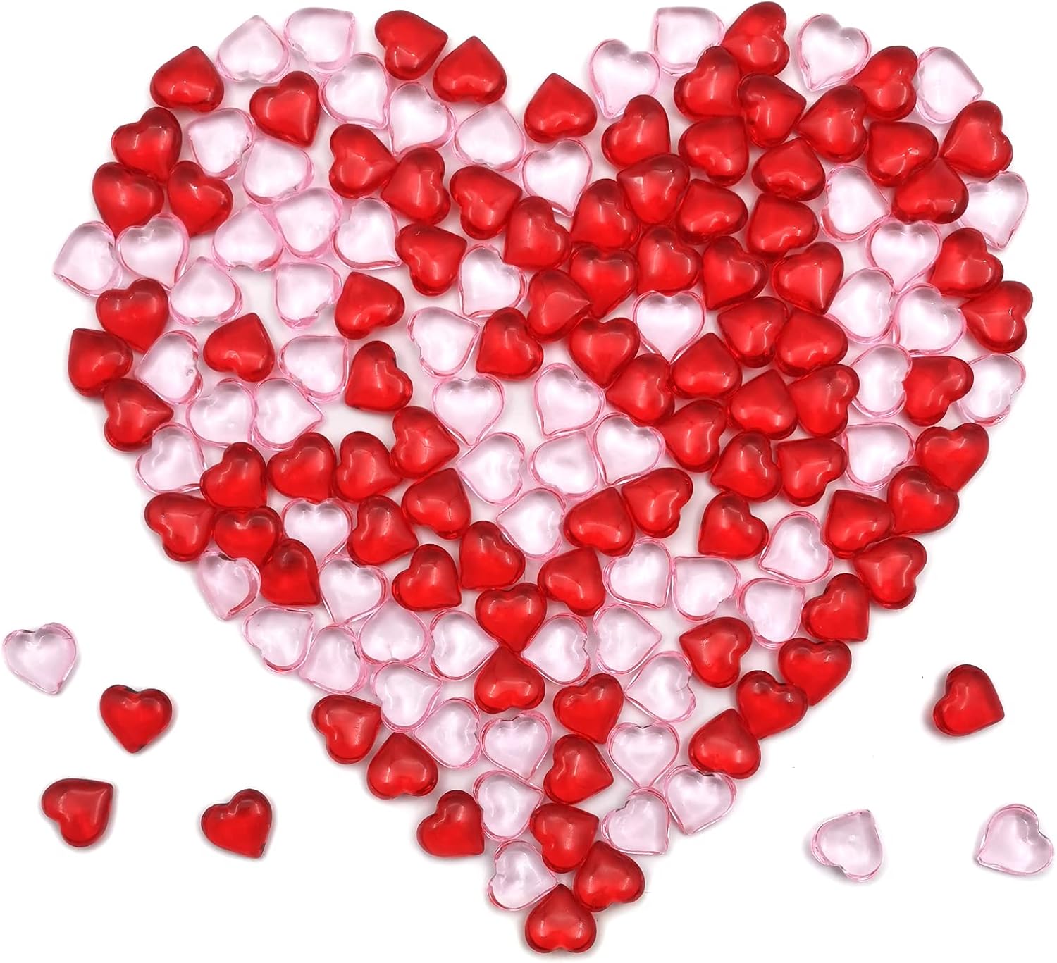 200pcs 3D Red Acrylic Heart 22 mm Acrylic Hearts Shaped Plastic Heart Vase Filler Table Decor Pink&Red