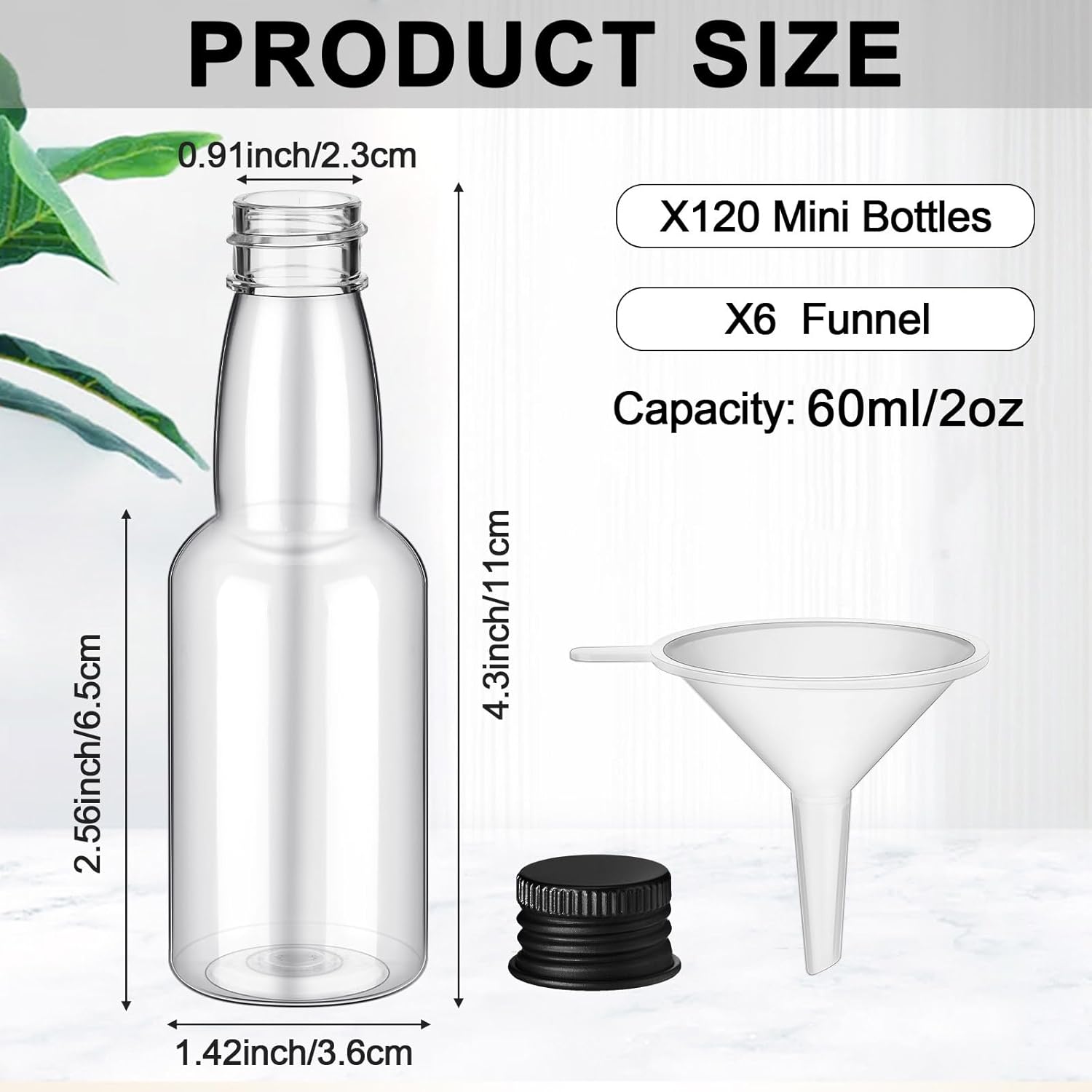 - Rich in Quantity: you will receive 120 pieces of mini liquor bottles with cap and 6 pieces of funnels, enough quantity and good combinations to meet your needs and replacements, and you can also share some with your friends and family members