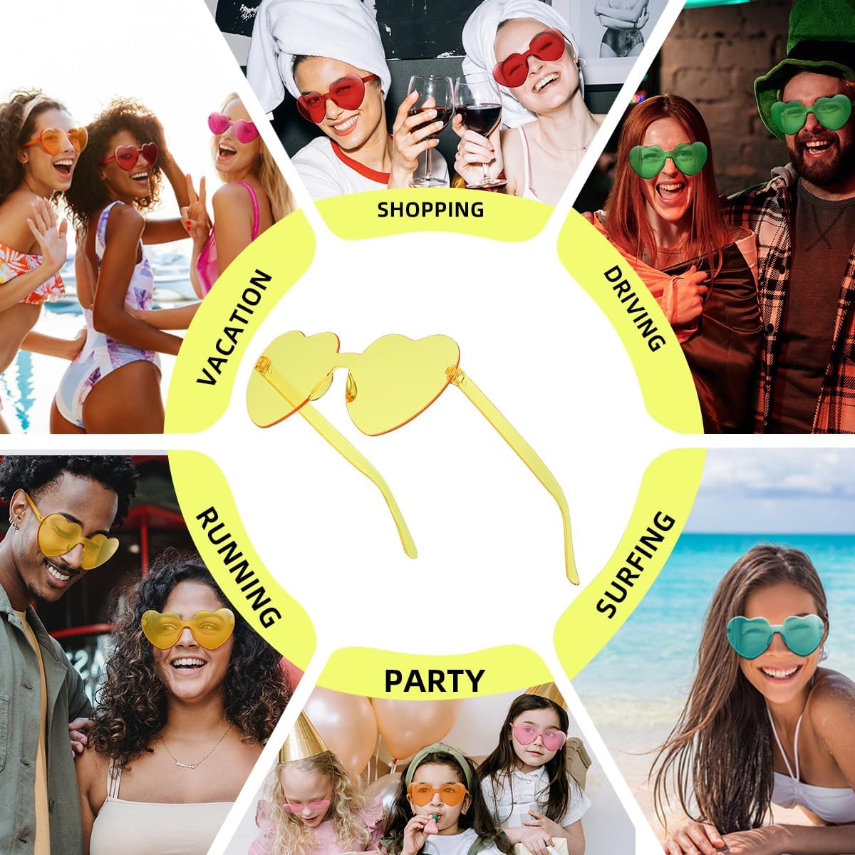 - Vibrant Color Options: Choose from an array of Heart Shaped Rimless Sunglasses vibrant candy colors or go for a classic solid color option to match your personal style; Mix and match to create your own signature look.
