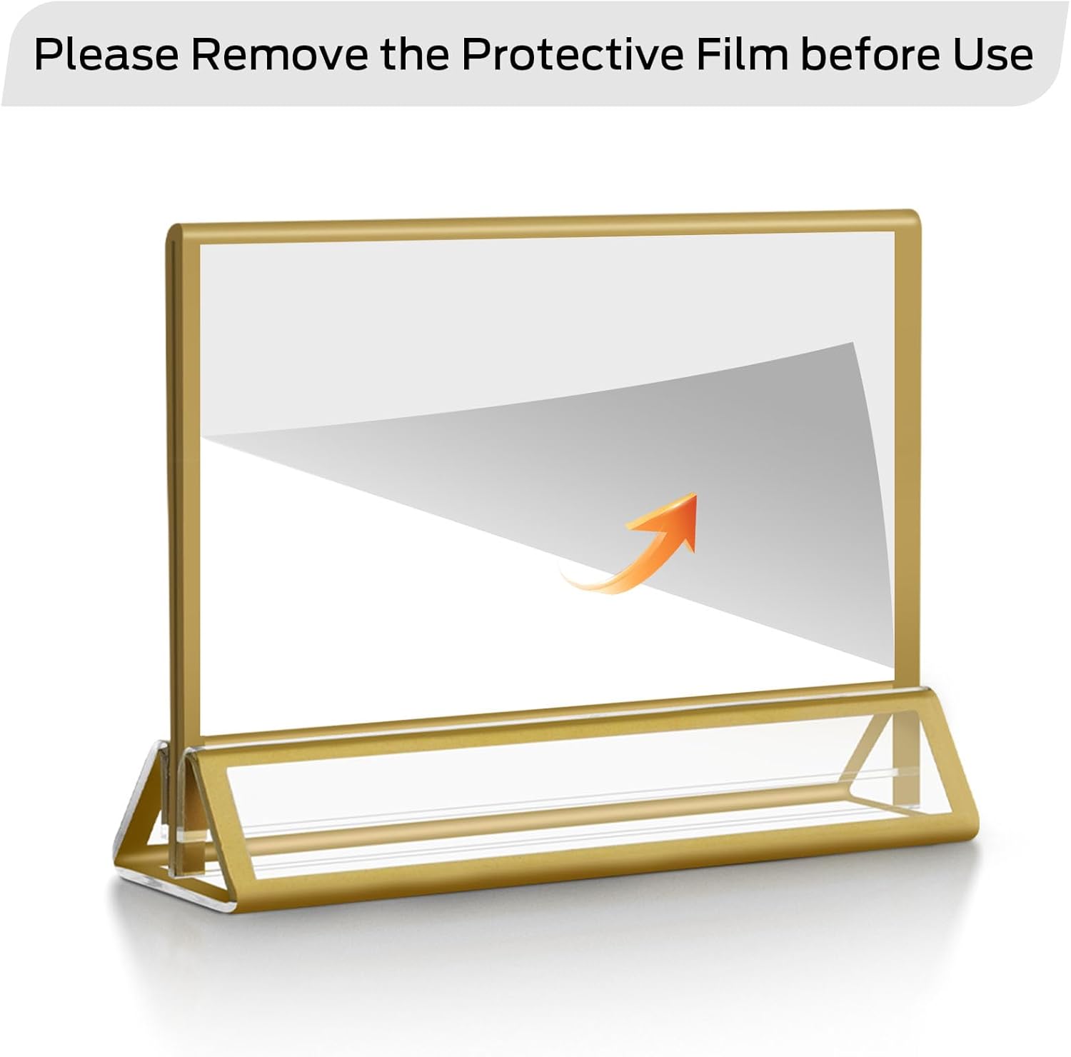 - 【What You Get】Pack of 16 gold acrylic sign holder with 16 horizonal stand, sufficient quantity can fully display any items you want to display. The clear acrylic sign holder with gold border measures 6x4 inch which can display pictures or documents.